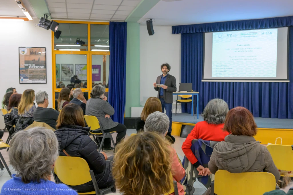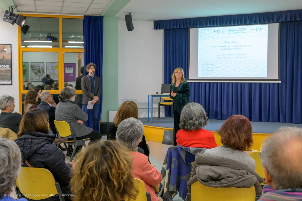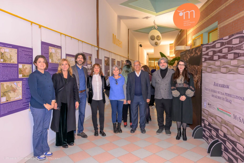 Domenica 21 dicembre è stata inaugurata alla galleria del Centro della Pesa di Riccione la mostra “Anfalkraw. Voci e storie sulla persecuzione dei Kurdi in Iraq”, che racconta il drammatico periodo vissuto dal popolo kurdo durante il regime di Saddam Hussein, restituendo voce e spazio a una delle vicende più tragiche del Novecento. Curata da Luca Colliva (MiSAK), Serenella Mancini (MiSAK – Università di Bologna) e Andrea Tirincanti (Museo del Territorio di Riccione), la mostra ha suscitato grande interesse ed emozione tra il pubblico presente.