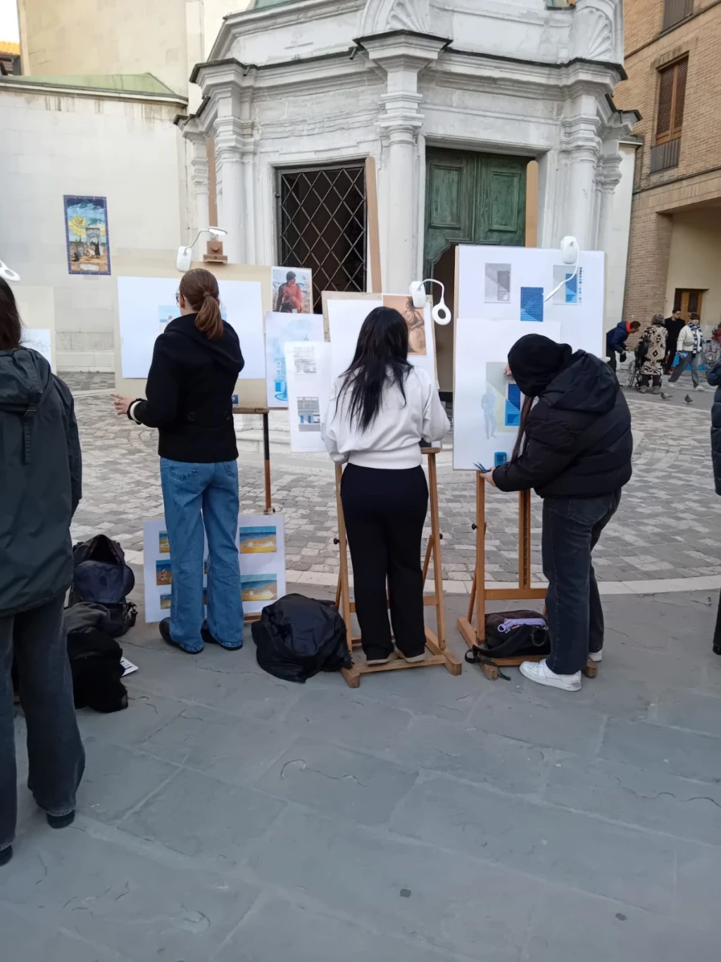 Il Liceo ha aperto le sue porte alla cittadinanza e piazza tre Martiri è stata gioiosamente invasa da cavalletti, tele e postazioni in cui i giovani artisti del Liceo si sono cimentati nello studio del paesaggio urbano e attorno ad altri temi specifici.