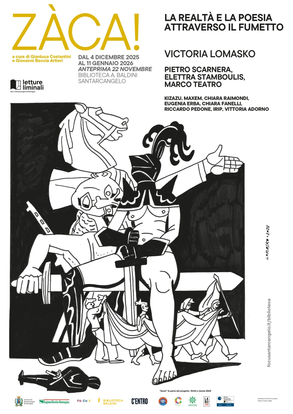 L’edizione di quest’anno presenta anche - Zàca! La realtà e la poesia attraverso il fumetto Festival del Fumetto giornalistico, un progetto di Letture Liminali (rassegna letteraria della Biblioteca Baldini e Fondazione Focus), a cura di Giovanni Boccia Artieri e Gianluca Costantini. Si tratta della prima edizione del festival, pensato e programmata per l'edizione 2025 di Diritti a tavola. Si parlerà di corpi disegnati (ovviamente), con una particolare attenzione alle violazioni dei diritti umani nei regimi e nelle situazioni di conflitto. Ospite principale Victoria Lomasko, artista russa esiliata in Germania. Dal 4 al 6 dicembre. Anteprima il 22 novembre.