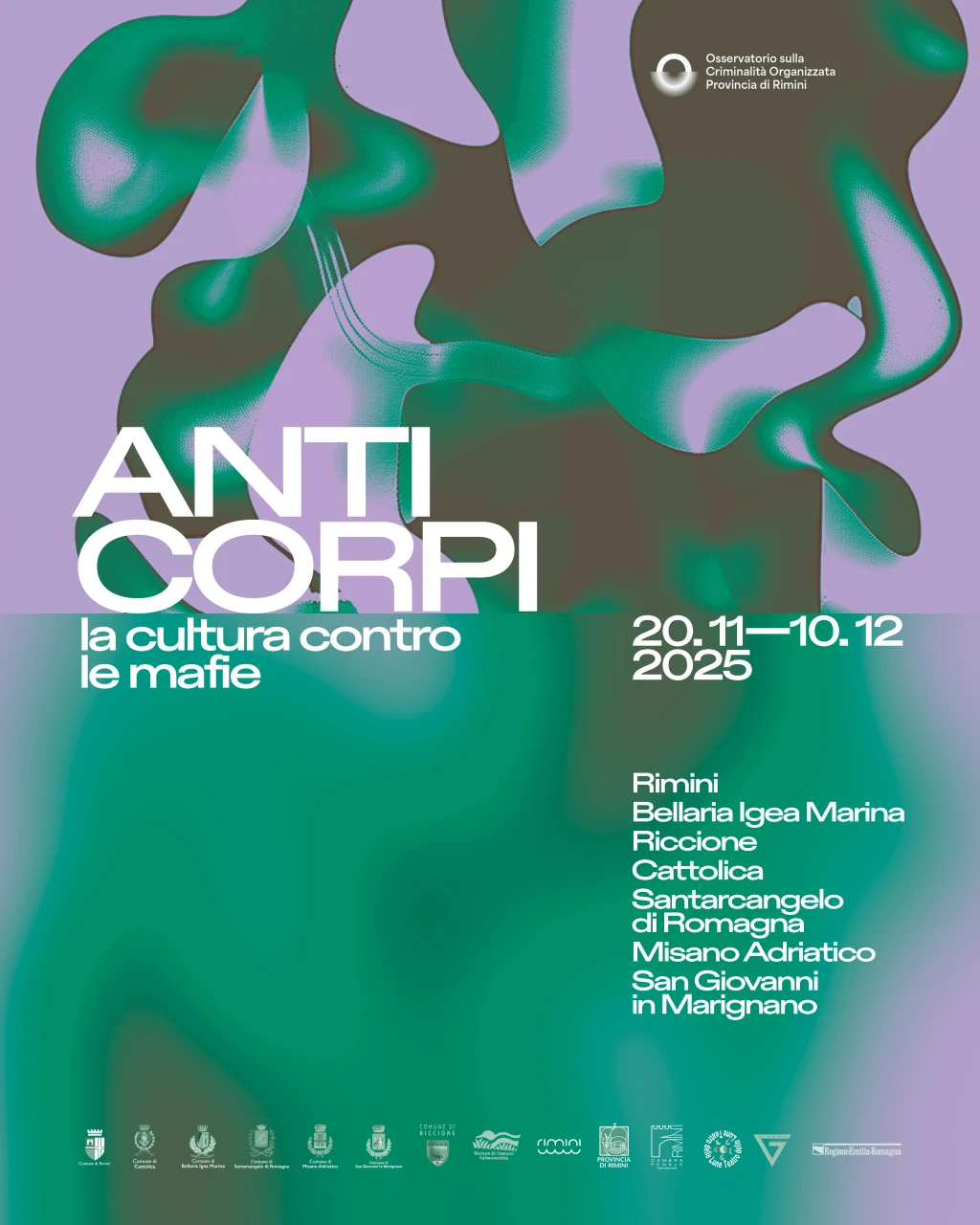 Ha preso il via l'edizione 2025 di “Anticorpi. La cultura contro le mafie”, la rassegna annuale promossa dall’Osservatorio sulla Criminalità Organizzata della Provincia di Rimini, un coordinamento di Enti e Istituzioni la cui missione è civile e culturale: l'analisi, la prevenzione e la diffusione della cultura della legalità. Il programma di Anticorpi, diffuso tra i sette Comuni che compongono il coordinamento, traduce in azioni concrete le linee d'intervento dell'Osservatorio, utilizzando linguaggi culturali e forme di sensibilizzazione mirate a target specifici, dalle istituzioni alla cittadinanza, con un forte focus sulle scuole.