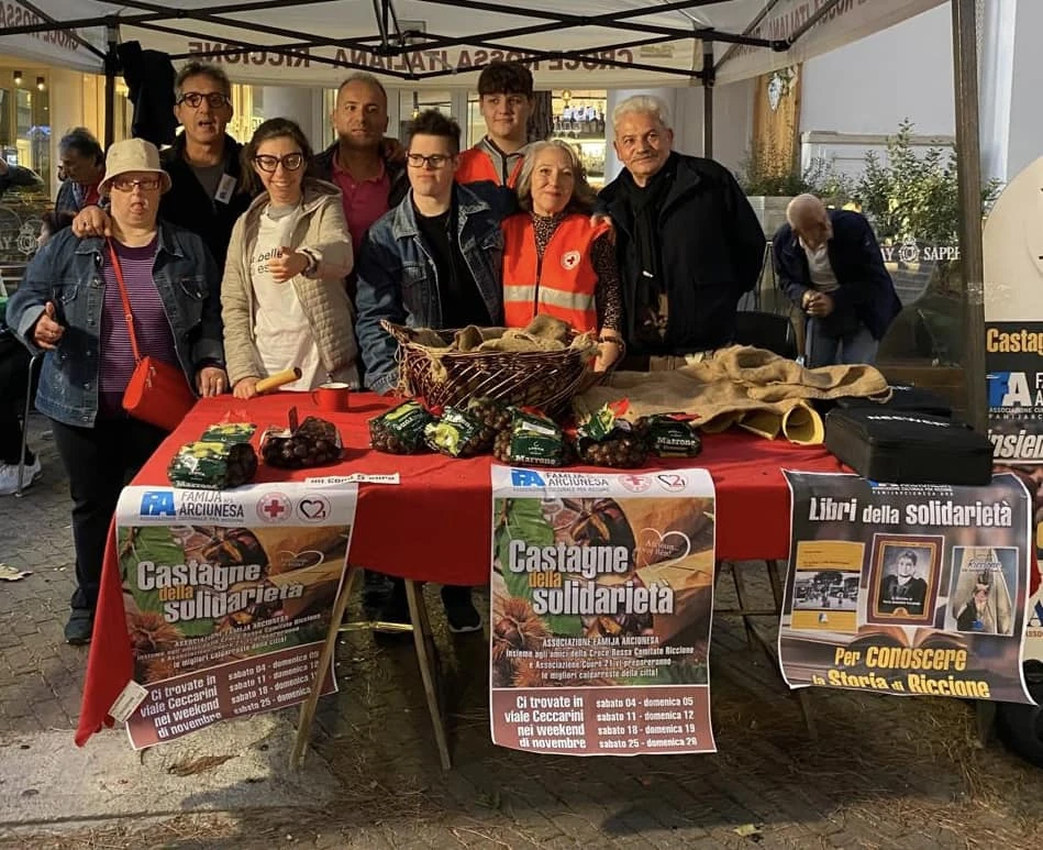Dal 29 novembre all’8 dicembre, nelle giornate di sabato, domenica e dell’Immacolata, Famija Arciunesa e il Comitato di Riccione della Cri promuovono la vendita benefica delle caldarroste