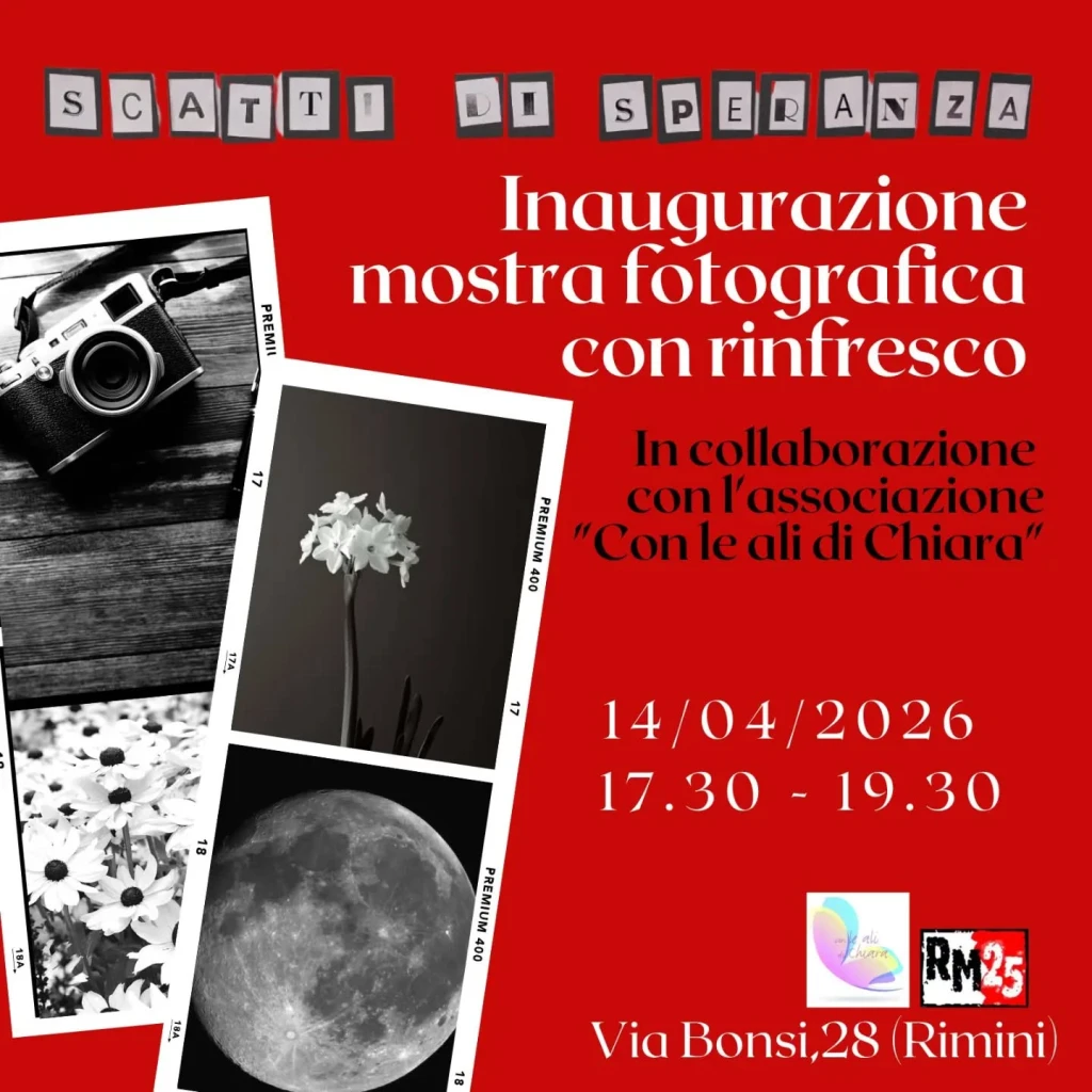 Gli “Scatti di speranza” continuano a vivere e a diffondersi in città. Le fotografie realizzate dai giovani tra i 14 e i 19 anni che hanno partecipato al concorso promosso dall’associazione Con le ali di Chiara lo scorso dicembre saranno infatti esposte in nuovi luoghi, incontrando pubblici diversi e ampliando il loro messaggio. Alcuni scatti sono già visibili presso l’Istituto Maccolini di Rimini, casa protetta per anziani, all’ex Cinema Astoria – grazie alla collaborazione con l’associazione Il Palloncino Rosso nell’ambito del progetto Ritorno all’Astoria – e nella sede del doposcuola dell’associazione.