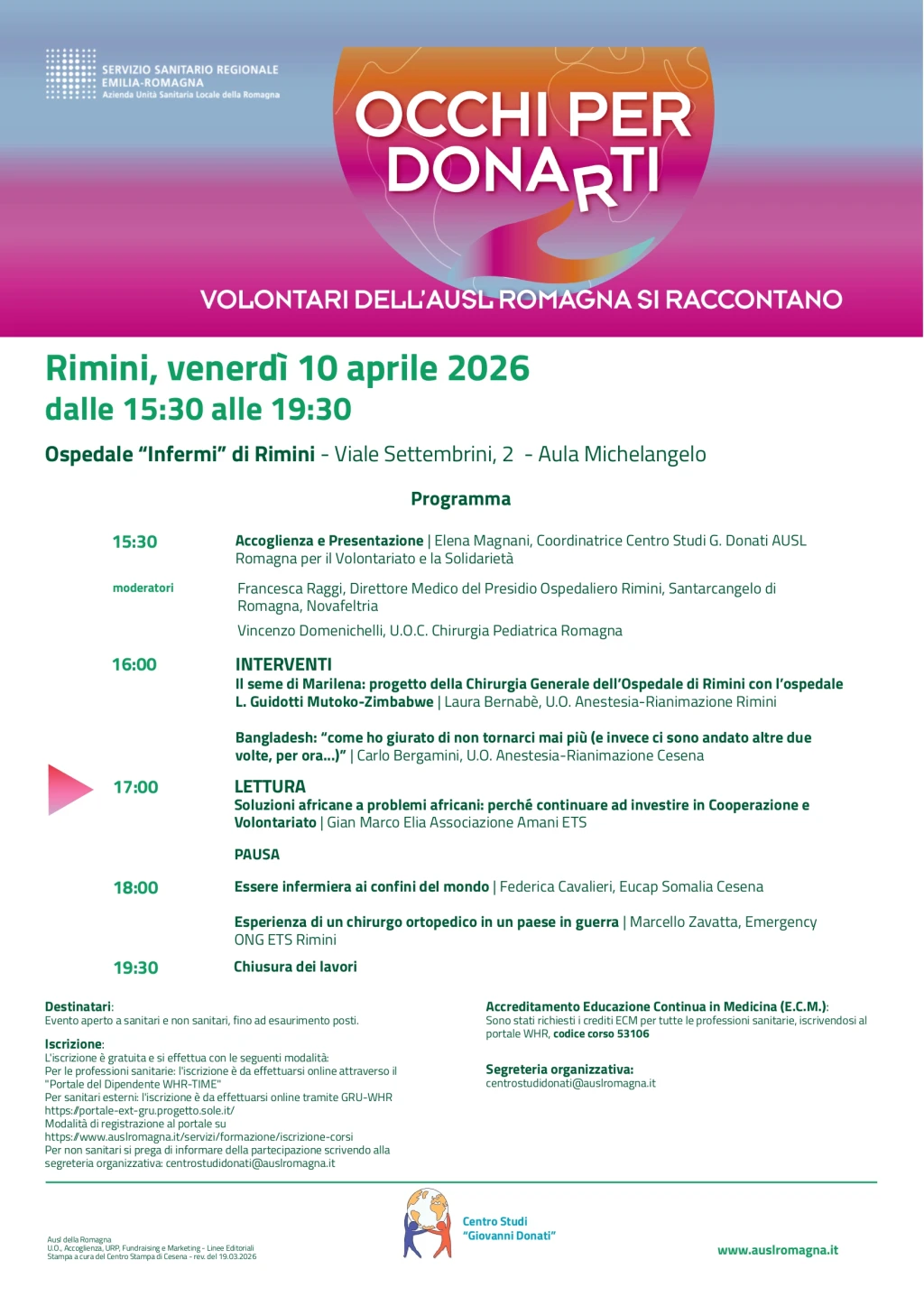 segreteria organizzativa: centrostudidonati@auslromagna.it .