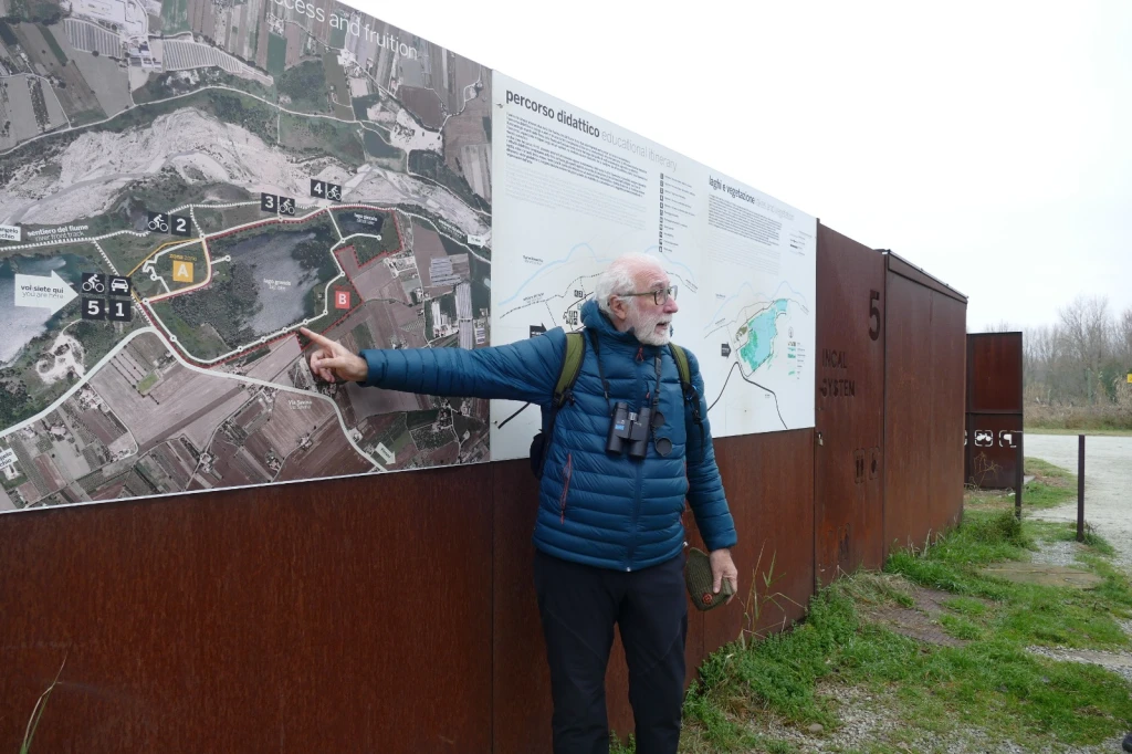 Il professor Riccardo Santolini dell’Osservatorio Naturalistico Valmarecchia e Cristian Montevecchi dell’Associazione Ornitologi dell’Emilia Romagna hanno guidato una camminata di osservazione e ascolto tesa a trasmettere l’importanza delle aree umide per la biodiversità e per la nostra stessa salute. Sempre grati al nostro amato fiume Marecchia, che oltre ad essere vivo e risonante, ci rifornisce del bene più prezioso: l’acqua. Ci siamo presi del tempo per il silenzio, per l'ascolto, per portare lo sguardo al di fuori di noi e incontrare le vite degli uccelli acquatici svernanti, il loro mistero, la loro fragile bellezza. Lo abbiamo fatto per conoscere un altro pezzetto del nostro territorio, lo abbiamo fatto perché siamo parte di un respiro più ampio e di una storia comune, una storia che condividiamo con le altre specie viventi. Moriglioni, volpoche, fischioni turchi, pavoncelle, germani reali, aironi cenerini, cormorani, marangoni minori e folaghe sono solo alcuni degli uccelli che abbiamo potuto ammirare. Abbiamo preso consapevolezza, insieme, di quanto l'ex cava In Cal System meriterebbe un presidio di controllo maggiore da parte delle istituzioni, per contenere danni e disturbo ambientale (in particolare abbandono di rifiuti), e di come la delicatezza e la complessità del sito, in rapporto alla conservazione della garzaia e ai flussi di allagamento controllati, rendano necessario un monitoraggio continuo da parte dell'ente gestore (la Regione Emilia Romagna).