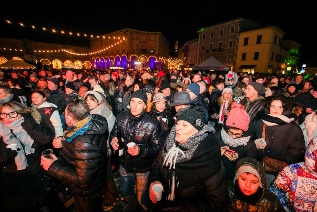 In migliaia si sono ritrovati in piazza Ganganelli e nelle vie del centro di Santarcangelo per il Capodanno in un km quadrato, arrivato all’undicesima edizione, e per DiscoBorgo. Il brindisi e gli auguri del sindaco Filippo Sacchetti e degli organizzatori sono stati accompagnati dal concerto di Margo’ 80, il gruppo romagnolo che ha dato avvio alla festa con sonorità disco-pop degli anni ’80.