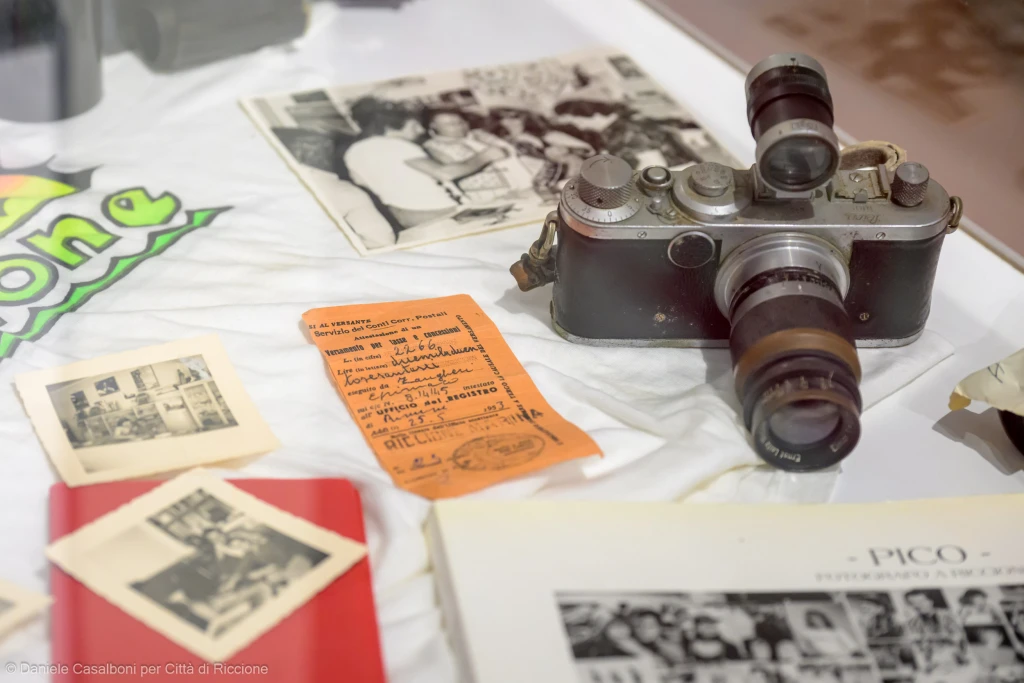 Un’altra sezione particolarmente evocativa è quella dedicata al negozio “Foto Riccione”, lo storico laboratorio di Pico. Lo spazio è stato ricostruito attraverso una scenografia che evoca fedelmente l’atmosfera del suo studio, crocevia di incontri, idee e racconti. A impreziosire l’allestimento, anche una serie di memorabilia messi a disposizione dalla famiglia: strumenti di lavoro, oggetti personali e materiali che hanno accompagnato quotidianamente la vita professionale del fotografo.