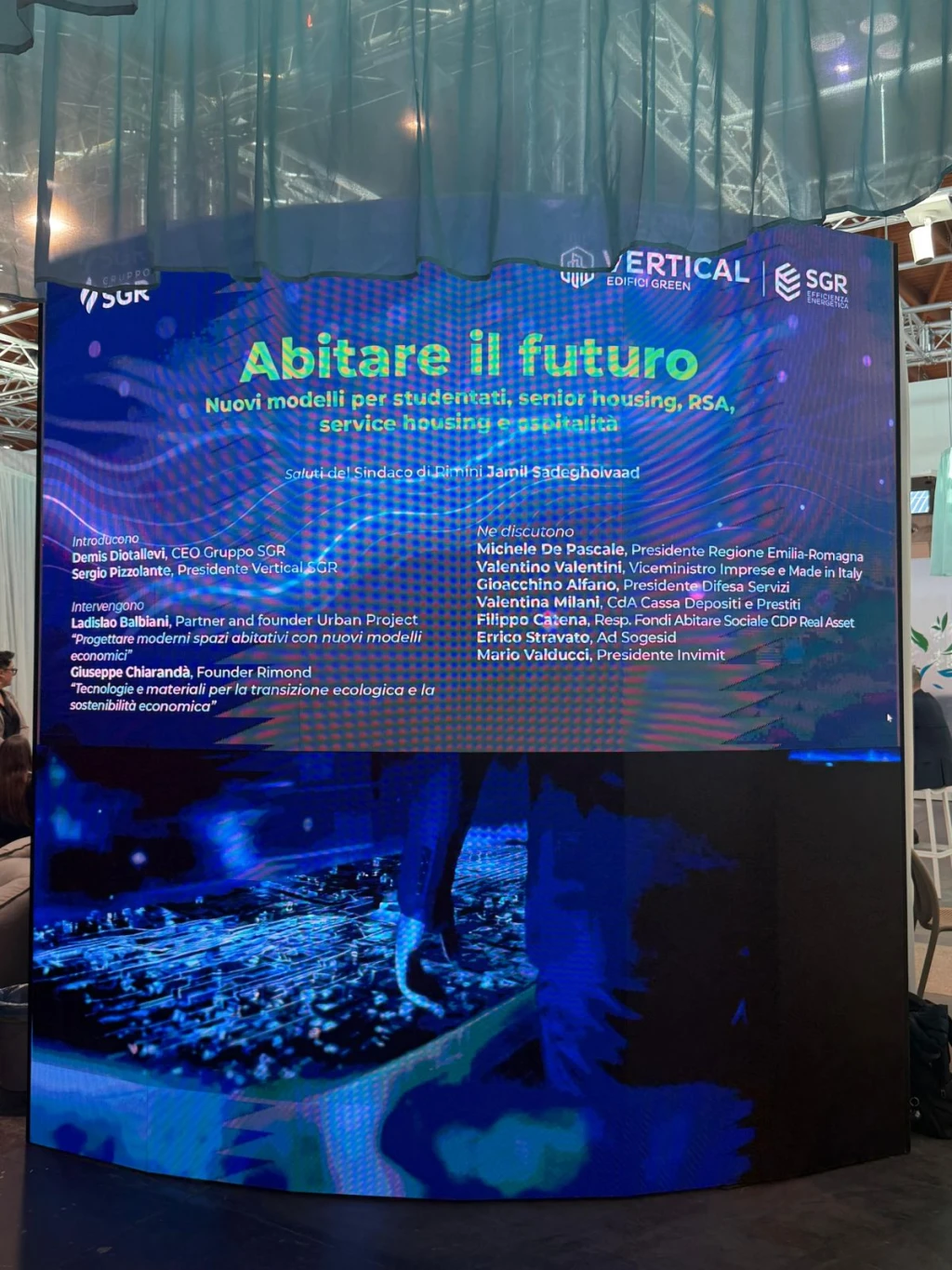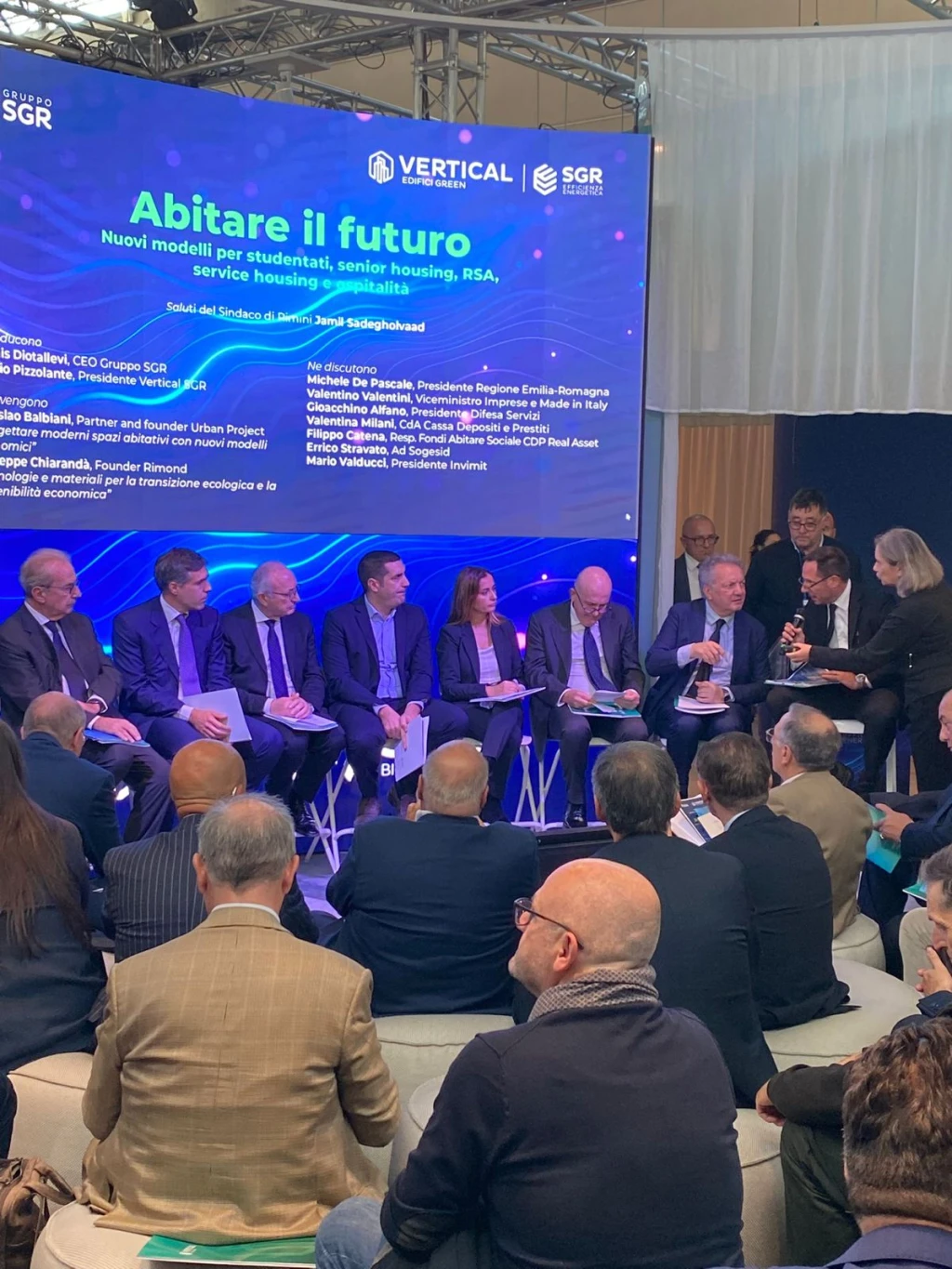 Nell'ambito della fiera Ecomondo si è svolto presso lo stand SGR Efficienza Energetica il convegno promosso da Vertical Sgr dal titolo “Abitare il futuro: nuovi modelli costruttivi per studentati, senior housing, RSA, service housing e ospitalità”: l'evento ha ha riunito amministratori pubblici, manager e professionisti del settore immobiliare per ragionare su come ripensare la casa in chiave sostenibile, inclusiva e socialmente utile.