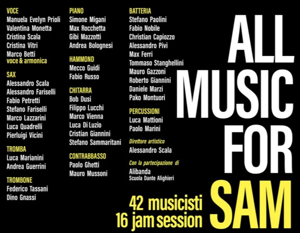 La serata sarà un viaggio nei generi che Sam amava di più – jazz, soul, funk e blues – con una successione di combo e jam session che si alterneranno sul palco. Sarà un concerto corale, un modo per sentire che Sam è ancora con noi, dentro la musica che continua a unirci.”