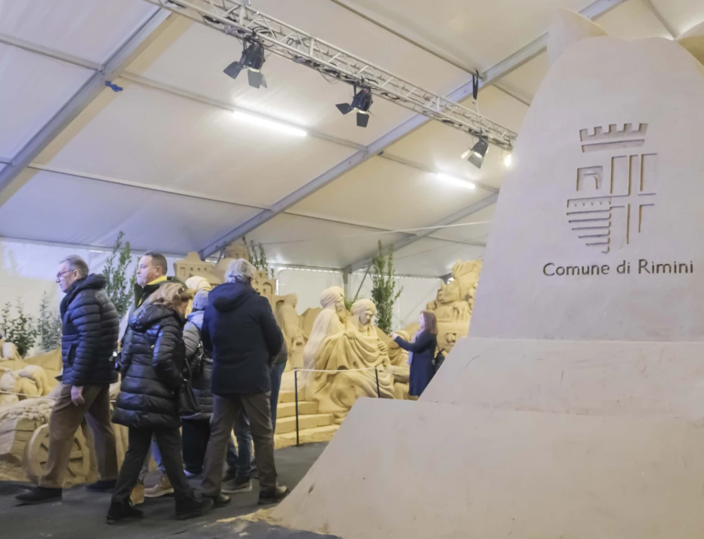 Si acceso in Piazzale Boscovich a Rimini, con un doppio appuntamento, il Villaggio di Natale. Oltre al taglio del nastro, con cui hanno preso via la pista di pattinaggio, il Circus e il mercatino natalizio, c'è stata anche l'inaugurazione del Presepe di Sabbia. L'edizione 2025/26, intitolata "Kolossal... l’Arca di Noè", è la più grande finora realizzata, estendendosi su circa 700 mq di spiaggia interamente al coperto. L'opera è il frutto della maestria di otto scultori internazionali—cinque donne e tre uomini provenienti da Spagna, Russia, Bulgaria, Bielorussia e Italia—che hanno dato forma ai grandi gruppi scultorei utilizzando esclusivamente sabbia e acqua. Le rappresentazioni includono scene bibliche imponenti, come l'Arca di Noè, l'Arcangelo Michele alto 5 metri e una Natività di oltre 5 metri ispirata al ‘Tondo Doni’ di Michelangelo Buonarroti, affiancate da elementi simbolici locali quali il borgo di San Giuliano e il Ponte di Tiberio. L’arrivo dei Re Magi è raffigurato sulla barca in arrivo davanti al Ponte di Tiberio. Le visite al Presepe sono accompagnate da personale che darà dettagli sia tecnici sulla costruzione che tematici sulle sculture. L'accesso è previsto nei giorni feriali (10:30 – 12:30 e 14:30 – 18:30) e con orario prolungato nei festivi, prefestivi e durante il periodo clou dal 24 dicembre al 6 gennaio (09:30 – 19:00), con aperture serali con spettacolo musicale in alcune date selezionate.