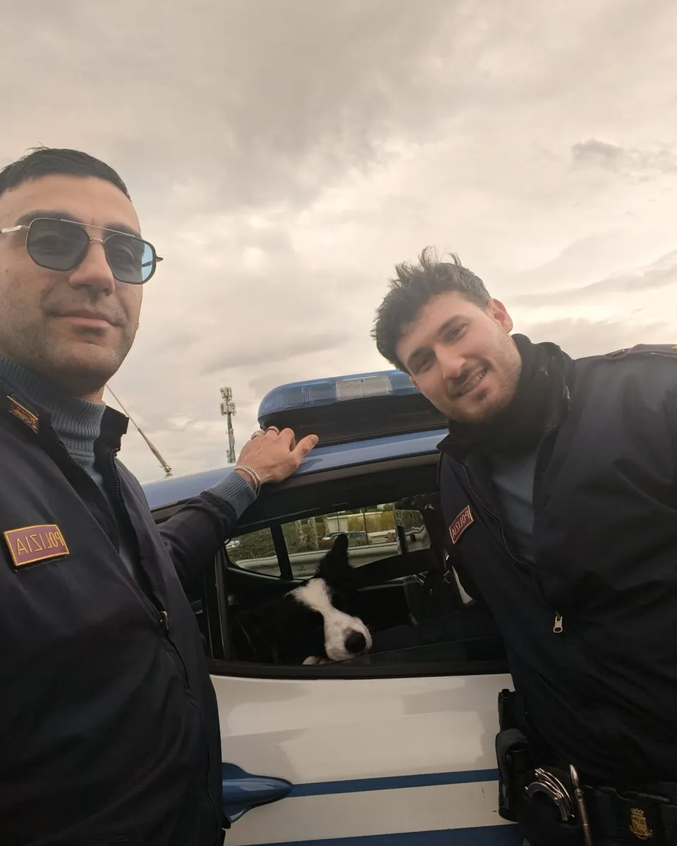 Gli agenti Francesco ed Andrea della Polizia di Stato di Rimini, transitando nei pressi del centro commerciale "Le Befane", hanno notato un cane senza padrone intrappolato nelle porte girevoli dell' ingresso principale. I poliziotti lo hanno raggiunto e dal microchip sono riusciti a risalire alla famiglia di appartenenza: il cane è stato riaccompagnato a casa.