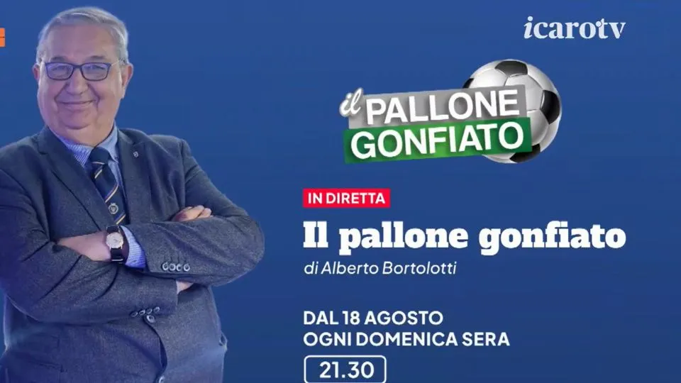 Calcio, ma non solo: da domenica 18 agosto alle 21,30 su Icaro TV scatta il nuovo appuntamento sportivo di Icaro TV per la stagione 2024-25. Alberto Bortolotti porta sulla nostra emittente la storia trasmissione calcistica “Il Pallone Gonfiato” che approfondirà i temi del campionato di Serie A con un focus soprattutto sul Bologna e spazierà poi sulle vicende della altre squadre della massima serie.