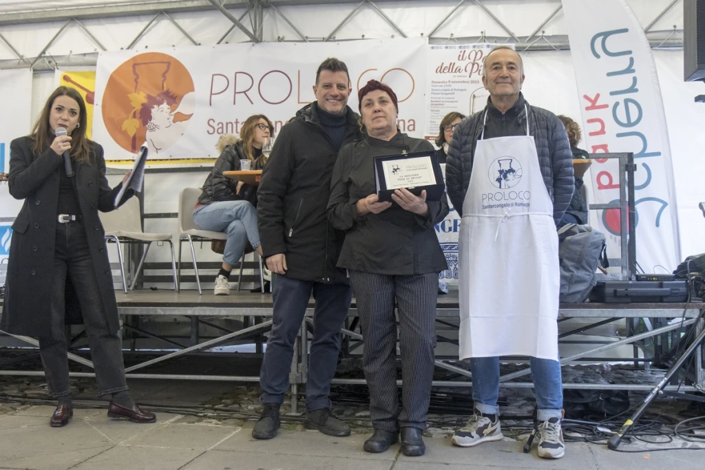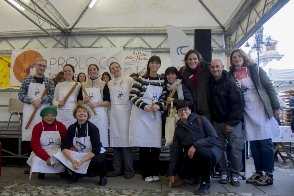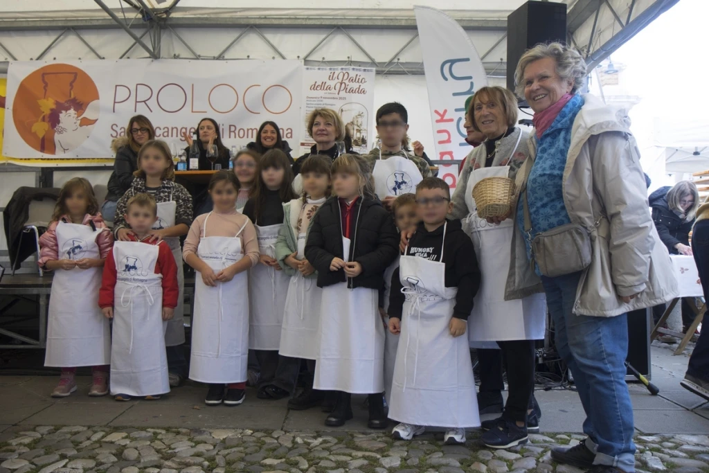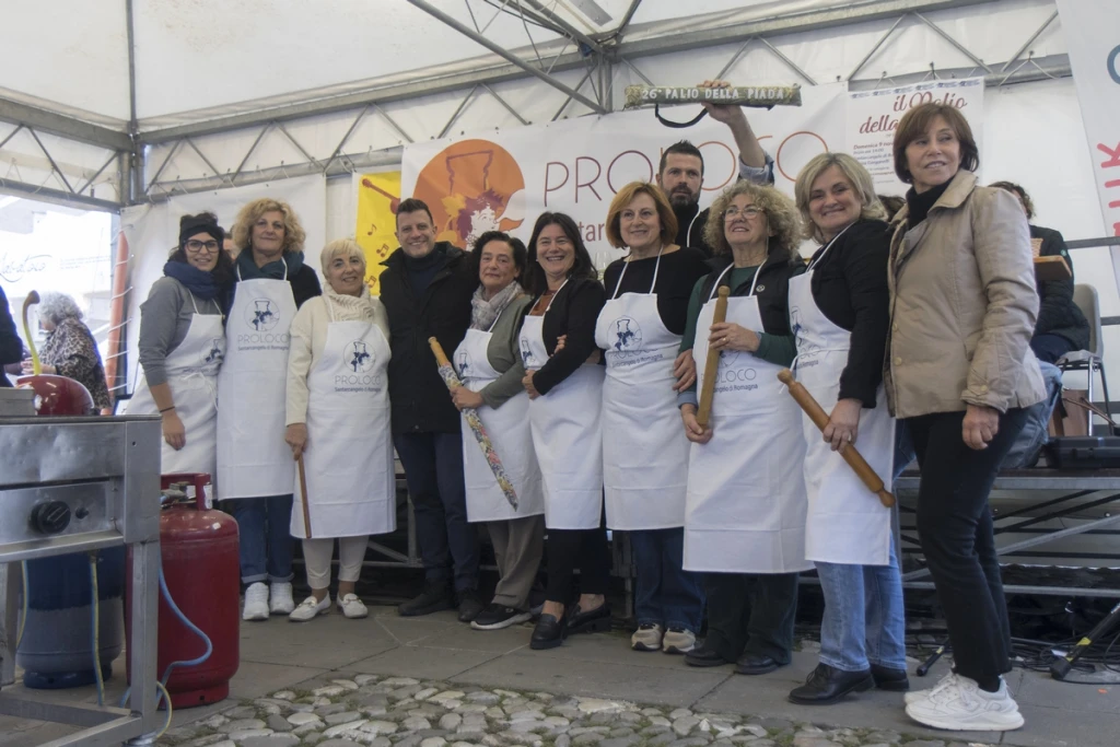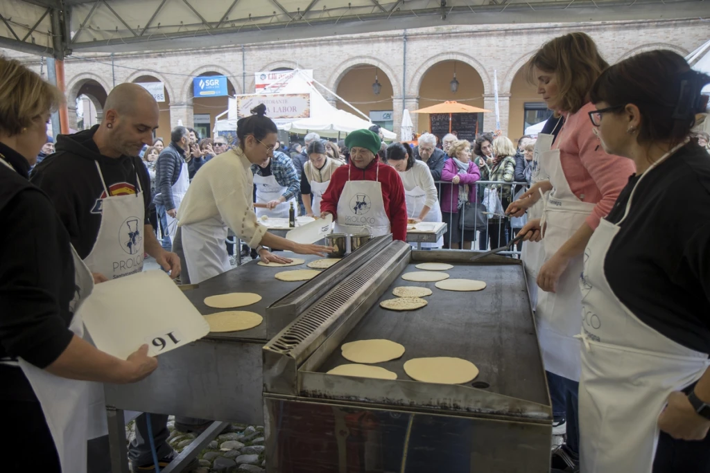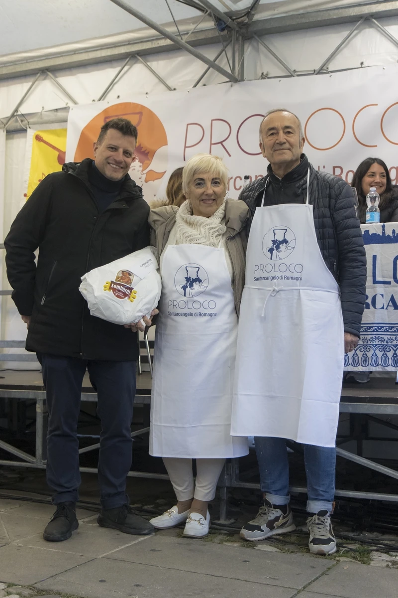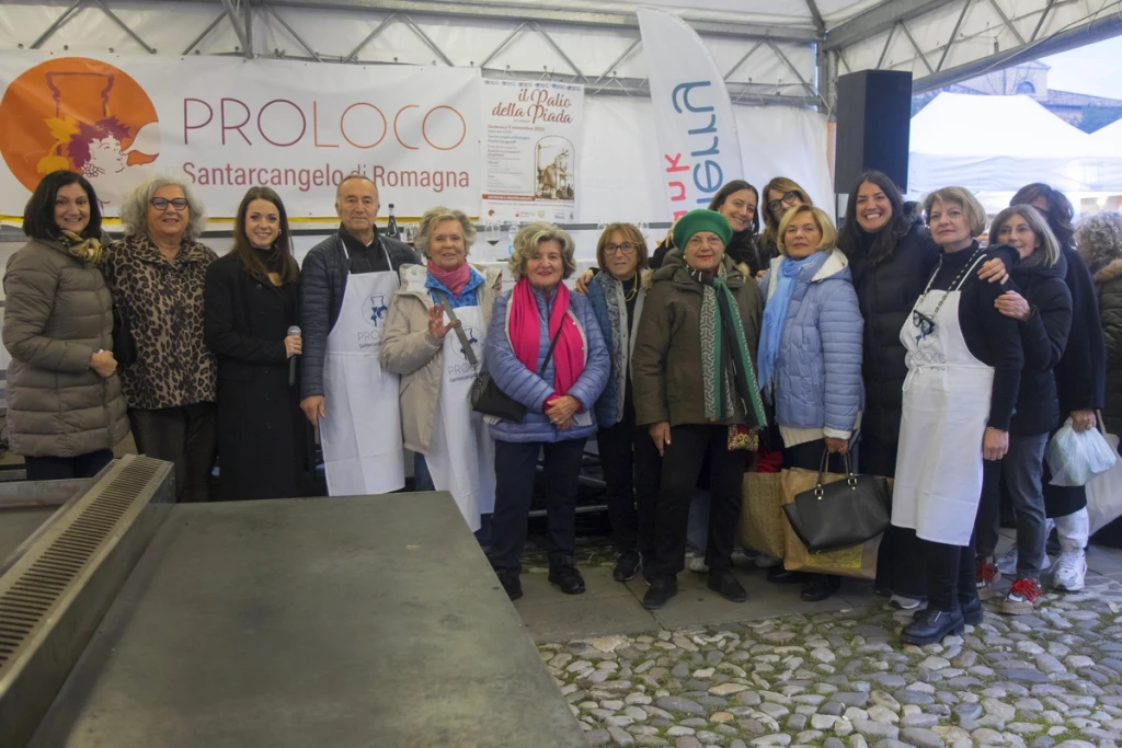 La più importante tra le Fiere d’Autunno di Santarcangelo ha visto una partecipazione straordinaria lungo tutto il fine settimana, grazie al meteo favorevole e alle numerose proposte, tra cui la più folkloristica, il Palio della piada organizzato da Pro Loco Santarcangelo. Ieri (domenica 9 novembre), davanti a un folto pubblico e a una giuria tutta al femminile, si sono sfidati una trentina di partecipanti nelle categorie bambini, giovani e over. I primi hanno ricevuto un buono per un gelato ciascuno, mentre tra i “giovani” il primo premio è andato a Lisa Muccioli (cena per quattro persone), il secondo a Ilaria Broccoli (Spa per due persone) e il terzo a Maria Chiara Giacomini (omaggio di pelletteria). Terza classificata nella categoria “over” Cinzia Tombi (un chilo di cappelletti), seconda Sara Orlandi (cesto offerto) e prima classificata, nonché vincitrice assoluta, Maria Donati, che ha ricevuto un prosciutto e il mattarello con il portamattarello, consegnati direttamente dal sindaco Filippo Sacchetti e dal presidente della Pro Loco Filiberto Baccolini. Il riconoscimento “La Pida di Bècch” alla migliore piadina cittadina – decretato da una giuria che in incognito ha assaggiato le piadine di osterie, ristoranti e gastronomie santarcangiolesi – è stato invece assegnato all’Angolo del Buongustaio.