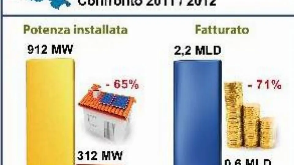 dati che sottolineano come quello appena trascorso sia stato un anno catastrofico per il settore con un fatturato in picchiata di 16 miliardi a livello nazionale. In provincia di Rimini nel 2012 sono stati installati 1.025 nuovi impianti fotovoltaici a fronte dei 1.130 del 2011. La potenza installata è stata di 23.480 chilowatt contro i 33.114 dell’ano precedente (- 29%). In termini di fatturato da 82 a 49 milioni. Un meno 40% legato al venir meno di alcuni incentivi nel conto energia ma anche ad una diminuzione dei prezzi delle installazioni.