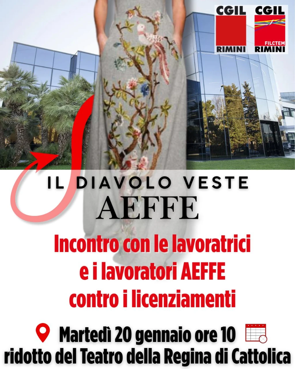 221 esuberi complessivi, ben 170 nella storica sede di San Giovanni in Marignano. Nonostante i tavoli ministeriali e regionali e la battaglia dei sindacati, non sembrano aprirsi spiragli per i dipendenti del Gruppo Aeffe (con marchi come Moschino e Alberta Ferretti) vittime di una crisi aziendale ormai nota da tempo ma esplosa negli ultimi mesi con la notizia che tutti speravano non arrivasse: l’avvio dei licenziamenti. Mentre proseguono le mobilitazioni, le lettere sono ormai state quasi tutte recapitate. Missive che mettono fine ad una storia lavorativa che per molti durava da 10, 20 anche 30 anni. Un’intera vita. I sindacati promettono verifiche puntuali su ogni singolo licenziamento ma la velocità con cui sono stati inviati complica ancor di più le cose. C’è poi da appurare quali siano i criteri utilizzati dall’azienda per scegliere chi lasciare a casa. Intanto le residue speranze restano aggrappate all’incontro del 21 gennaio a Ministero. Il giorno precedente la Filctem Cgil ha convocato lavoratori e lavoratrici alle 10 del mattino nel ridotto del Teatro della Regina di Cattolica per dire no ai licenziamenti. Emblematico il titolo scelto. “Il diavolo veste Aeffe”, parafrasando un noto film dedicato proprio al mondo della moda. Un mondo che negli ultimi anni ha visto contrapposti il luccichio delle sfilate e il grigio di una crisi che morde sempre più forte il comparto. Lo rivelano anche i numeri dell’export riminese che, fiore all’occhiello del territorio, ha visto nei primi 9 mesi del 2025 un tracollo del 13,5%. Un calo che, è questo il timore, potrebbe mettere a rischio non solo il gruppo Aeffe ma tante altre aziende della moda.