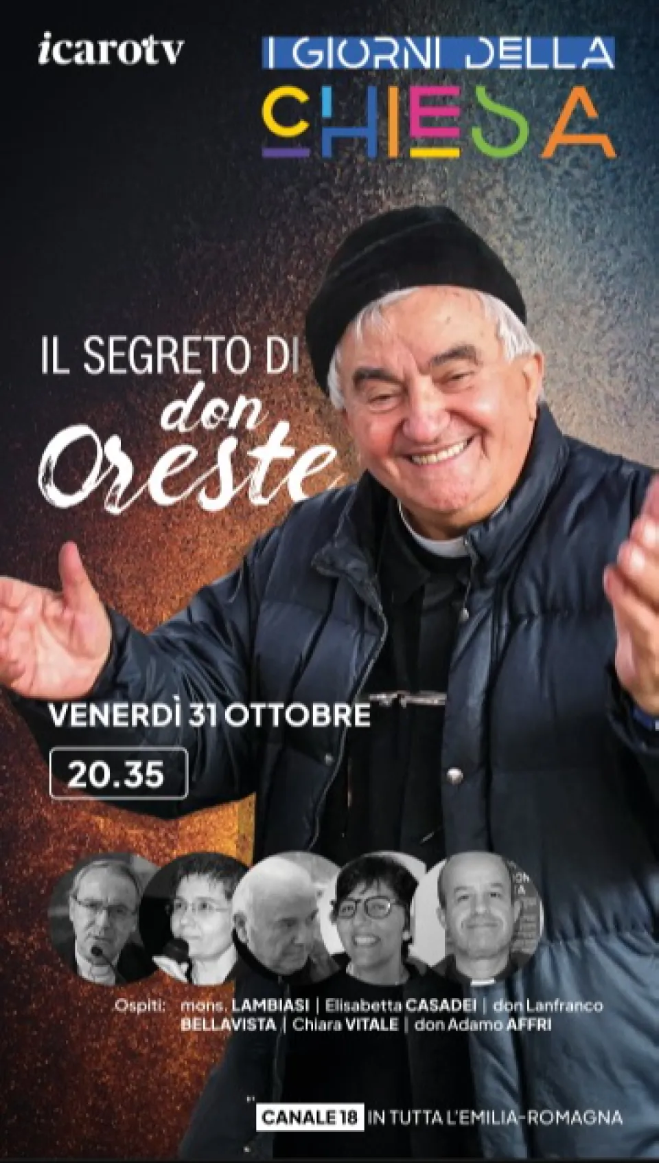 Puntata speciale questa sera alle 20,35 su Icaro TV de "I Giorni della Chiesa" dal titolo "Il segreto di Don Oreste". In studio, per parlare delle spiritualità e della mistica di don Oreste Benzi, a due giorni dal 18esimo anniversario della sua scomparsa, il 2 novembre del 2007, e partendo dal libro "La mistica della tonaca lisa", l'autrice e postulatrice della causa di beatificazione Elisabetta Casadei, il vescovo emerito di Rimini Francesco Lambiasi, Chiara Vitale docente di Spiritualità all'Istituto Superiore di Scienze Religiose Alberto Marvelli, don Adamo Affri, sacerdote della comunità Papa Giovanni XXIII e don Lanfranco Bellavista, fondatore della Piccola Famiglia dell'Assunta di Montetauro e figlio spirituale di don Oreste. Grazie agli ospiti sarà possibile approfondire il cuore della testimonianza del prete riminese che ha speso la sua vita con i piccoli e i poveri.