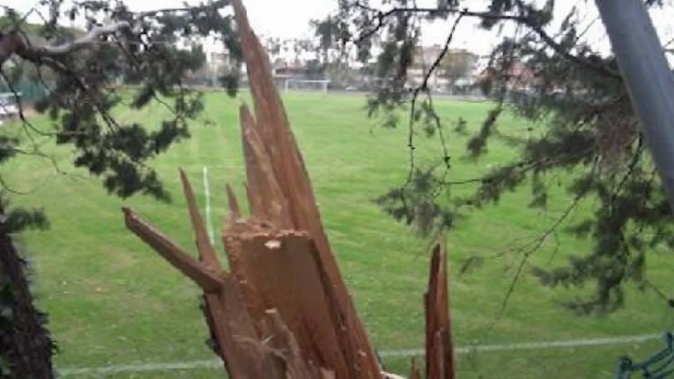 (nella foto Newsrimini.it, il campo di Viserba visto dalla recinzione lato chiesa danneggiata dal maltempo)