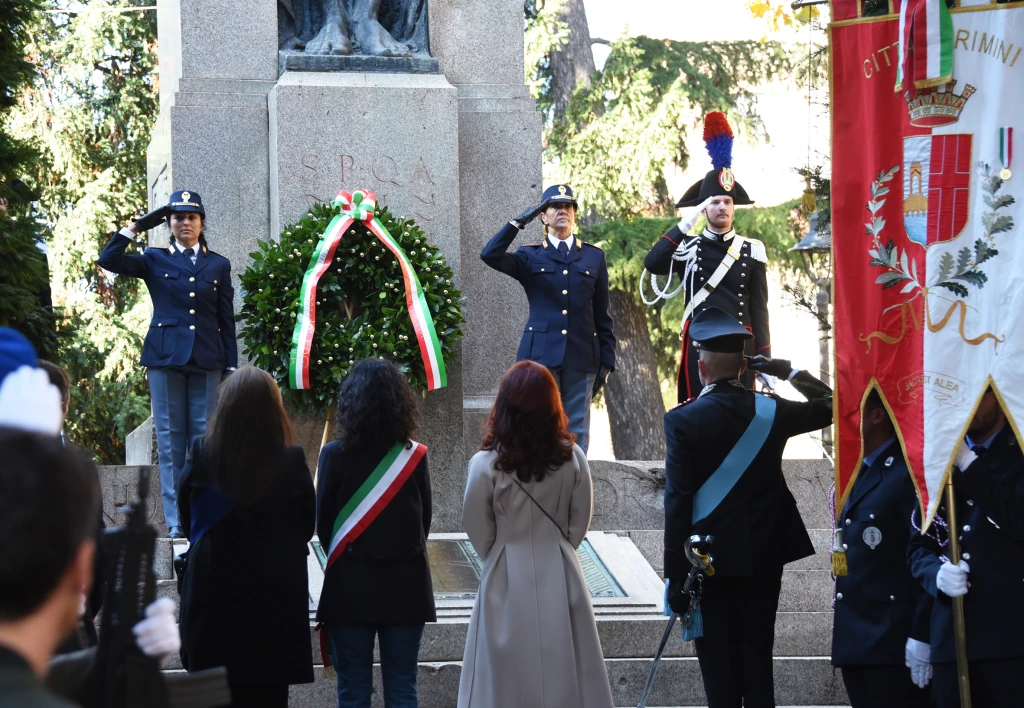 Nella mattinata di oggi (martedì) si è svolta in centro a Rimini la cerimonia per la Giornata dell’Unità Nazionale, nell’anniversario dell’armistizio di Villa Giusti del 1918, e delle Forze Armate. Presenti, davanti allo schieramento in armi, le autorità della provincia. Diversi i sindaci presenti. Per l'amministrazione comunale di Rimini c'era la vice sindaca Chiara Bellini.