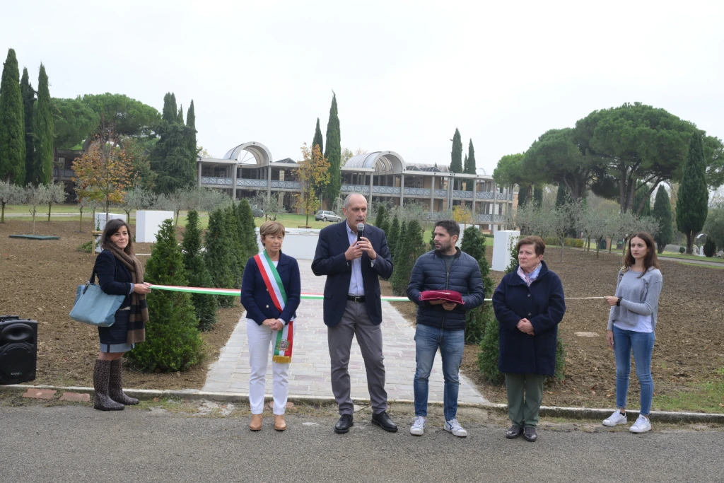 Esteso su una superficie di circa 1.500 metri quadrati, in prossimità dell’ossario comune, il Giardino delle rimembranze è stato progettato come luogo di raccoglimento e memoria, dove la natura diventa parte integrante del ricordo. Il progetto risponde inoltre alla crescente richiesta di spazi per la dispersione delle ceneri, come previsto dalla normativa regionale.