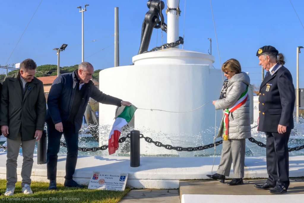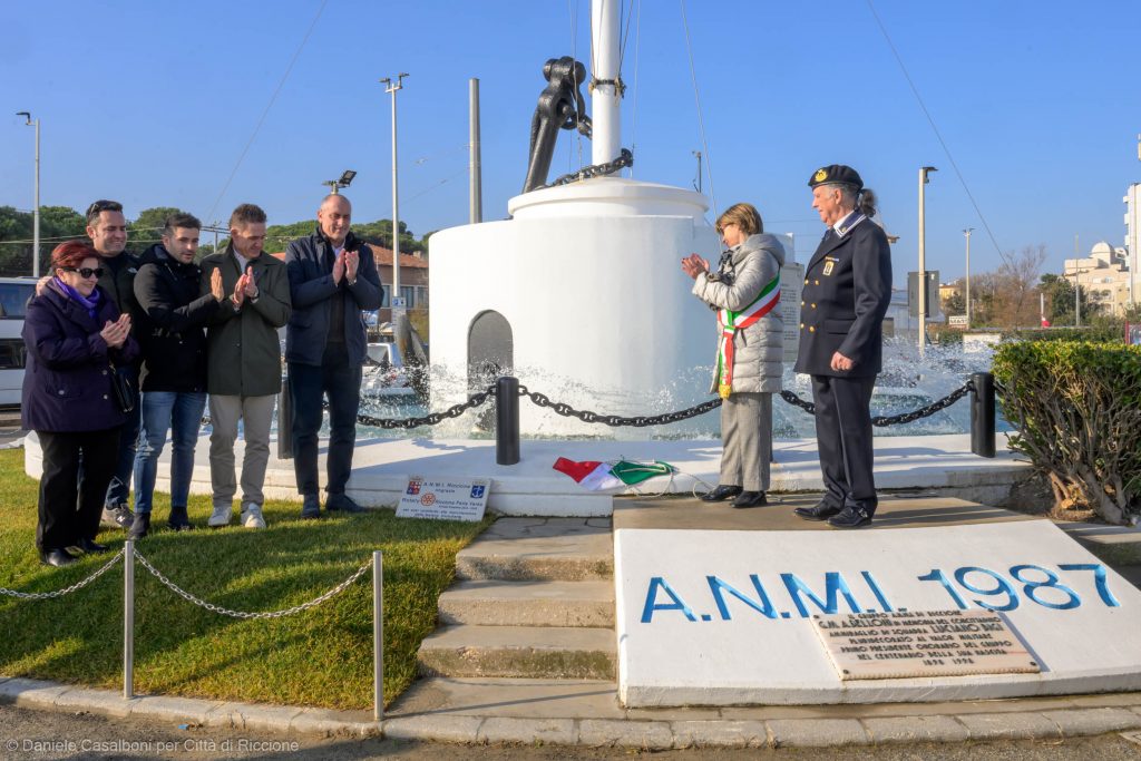 La sindaca Daniela Angelini, insieme alla Giunta comunale, ha inaugurato la ristrutturazione della fontana monumento dedicata ai Caduti del Mare, in piazzale Marinai d’Italia. La cerimonia si è svolta alla presenza delle autorità militari e civili, di Fabio Galli, presidente di Geat che si è occupata dei lavori di manutenzione, e di alcuni membri del gruppo di Riccione dell’associazione nazionale Marinai d’Italia. Durante la cerimonia il presidente dell’Anmi, Paolo Pasquinelli, ha svelato una targa marmorea di ringraziamento dedicata al Rotary Club Riccione Perla Verde, presente alla cerimonia, per il contributo a favore del restauro. Dopo la cerimonia l’associazione Marinai d’Italia di Riccione ha salutato gli intervenuti presso il Grand Hotel di viale Gramsci. L’intervento di manutenzione e riqualificazione – scrive l’amministrazione – rappresenta un passo importante per il recupero e la valorizzazione di un elemento significativo del patrimonio storico e culturale cittadino. L’intervento, che garantisce una protezione duratura delle strutture, ha ripristinato l’aspetto originario del monumento. Particolare attenzione è stata dedicata all’impermeabilizzazione e alla tinteggiatura della base della fontana e a quella delle scritte in pietra. Ripristinati anche i paletti sul muretto di recinzione, le porte e l’ancora in ferro e sostituita la catena sul basamento.