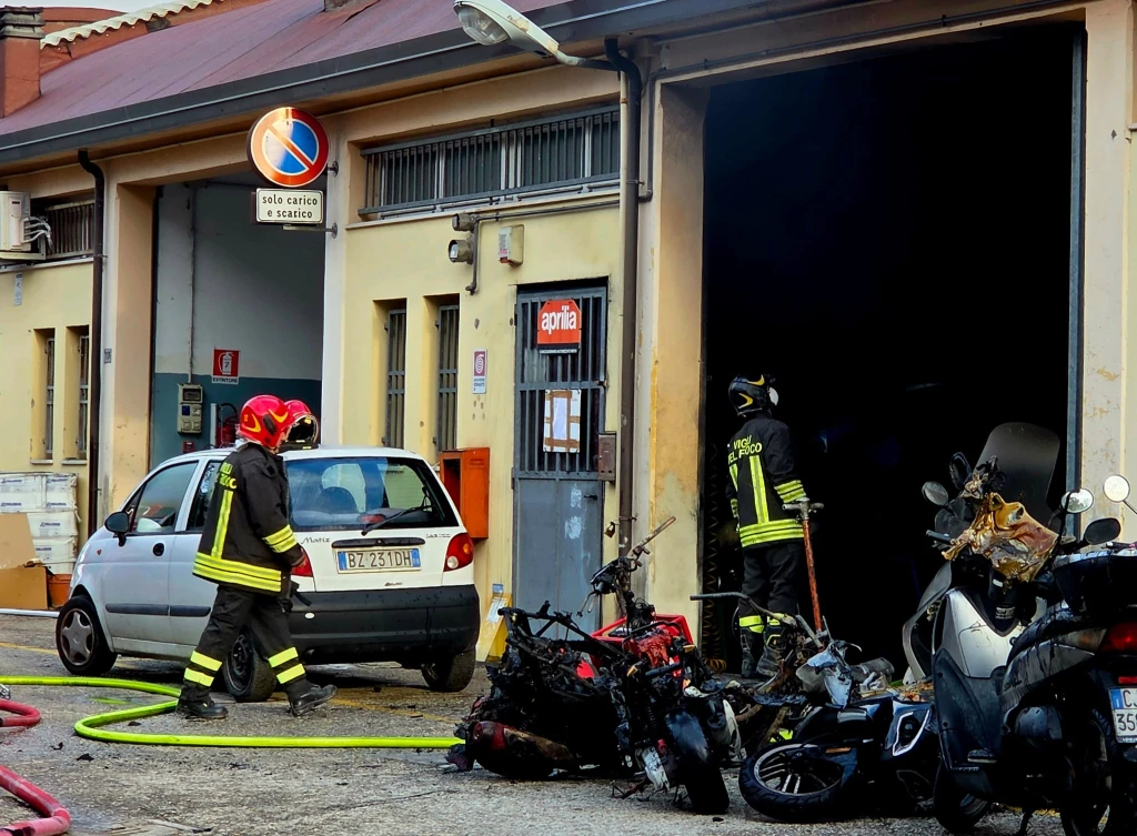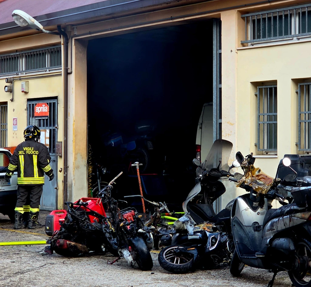 Incendio in un'officina, distrutte moto e scooter