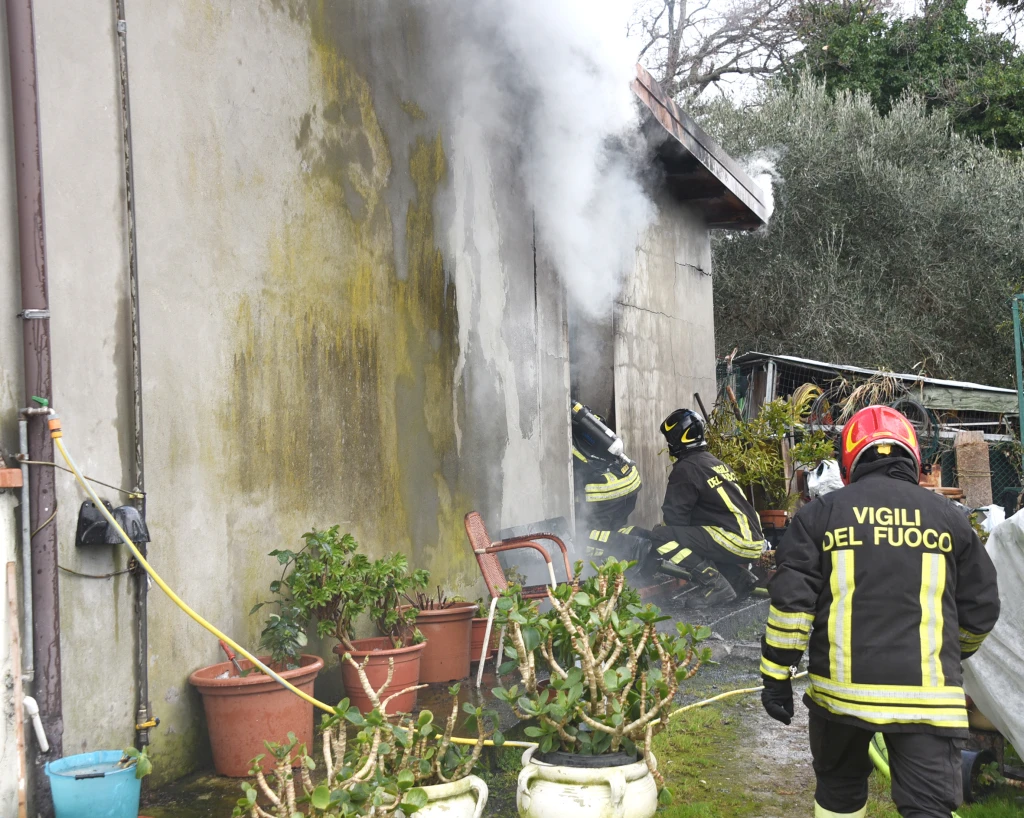 Incendio nel ripostiglio di una casa a Monte Tauro. Soccorso il proprietario