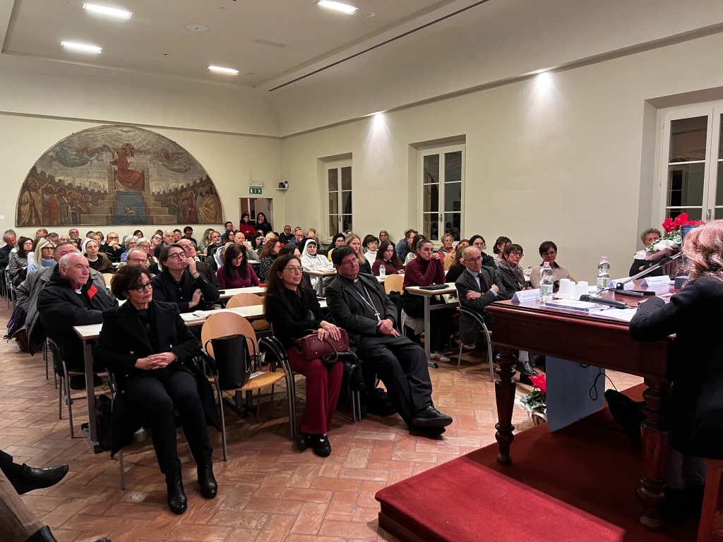 "L’essere per gli altri era la sua caratteristica fondamentale. Per lei significava modificarsi continuamente, imparare incessantemente e, soprattutto, seguire la sua stella polare: la fede. Una fede semplice, non tradizionalista, fondata sul principio che non si può essere veramente fedeli senza essere per gli altri. Le persone vanno ascoltate, comprese, interpretate e accompagnate, in un rapporto che non è soltanto faticoso, ma che richiede anche un costante cambiamento di mentalità”. Sono le parole commosse di Piergiorgio Grassi in occasione dell’intitolazione alla moglie, Cinzia Montevecchi, del Fondo antico della Biblioteca diocesana Biancheri, raccontato nell'ultimo numero del Settimanale Il Ponte. Colma fino all’inverosimile nei giorni scorsi l’aula magna dell’Istituto superiore di Scienze religiose “Alberto Marvelli” delle Diocesi di Rimini e di San Marino, all'evento introdotto da don Guido Benzi. Per nessun motivo al mondo sarebbero mancati familiari, amici, ex colleghi ed ex studenti. Cinzia Montevecchi, oltre che Prefetto della biblioteca diocesana, è stata un’educatrice molto nota e apprezzata in città. “Una persona appassionata di cultura”, ha sottolineato il vescovo Nicolò Anselmi. “Un’insegnante che ha preso sul serio la questione della povertà educativa e che ha finalizzato la sua operatività alla fede, al suo amore per la Chiesa".