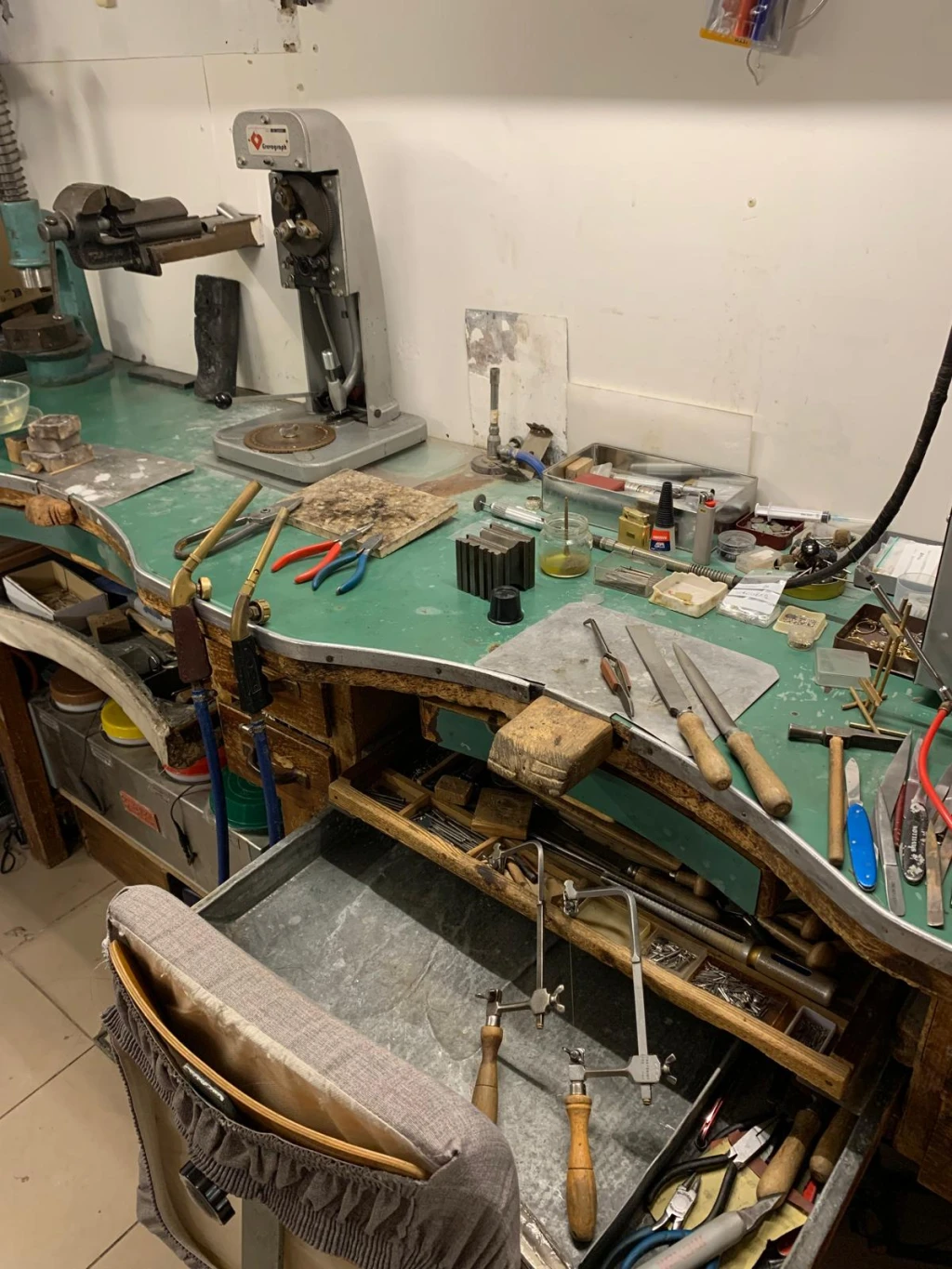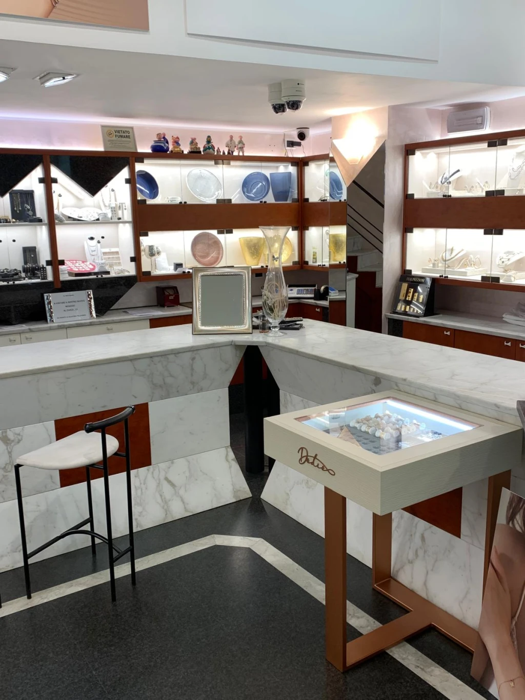Lo scorso ottobre ha festeggiato i suoi primi cinquant’anni di attività, mantenendo intatti identità, spazi e modalità di lavoro. La gioielleria ha infatti conservato nel tempo non solo l’arredo originario e le vetrine storiche, ma anche un laboratorio artigianale interno, separato ma visibile al pubblico. Un luogo dove la tradizione non è solo memoria, ma pratica quotidiana: bilance pesa-oro risalenti agli anni Quaranta, punzonatrici manuali, banchi da lavoro storici, pantografi per incisioni e strumenti per la lavorazione e l’incassatura delle pietre preziose sono tuttora utilizzati, testimoniando una manualità che continua a vivere nel presente.