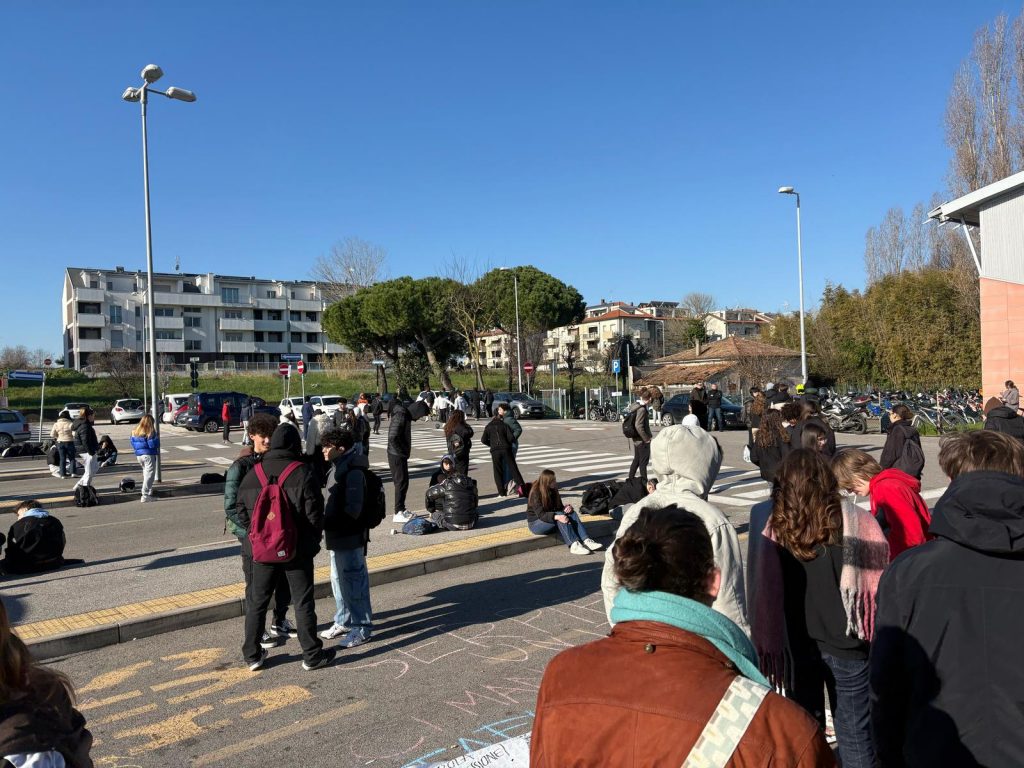 Giornata di sciopero al Liceo Serpieri, nel polo di Viserba. Nella mattina di lunedì gli studenti non sono entrati nell’edificio e hanno manifestato sul piazzale. Un modo per esprimere il loro dissenso in merito al clima di tensione e disagio che si vive da alcune settimane a questa parte.