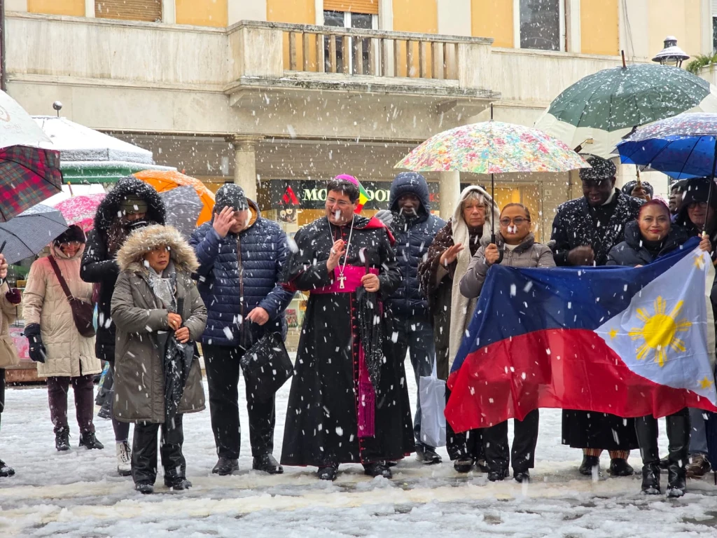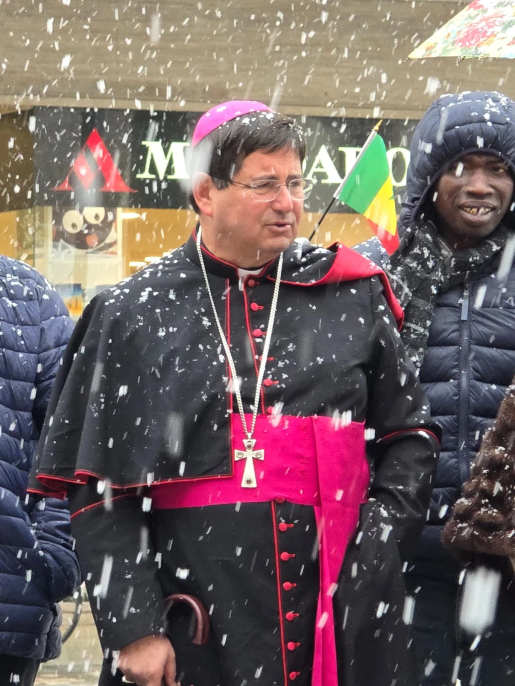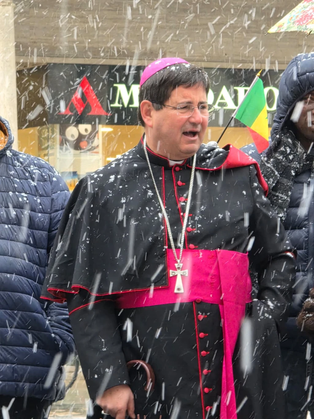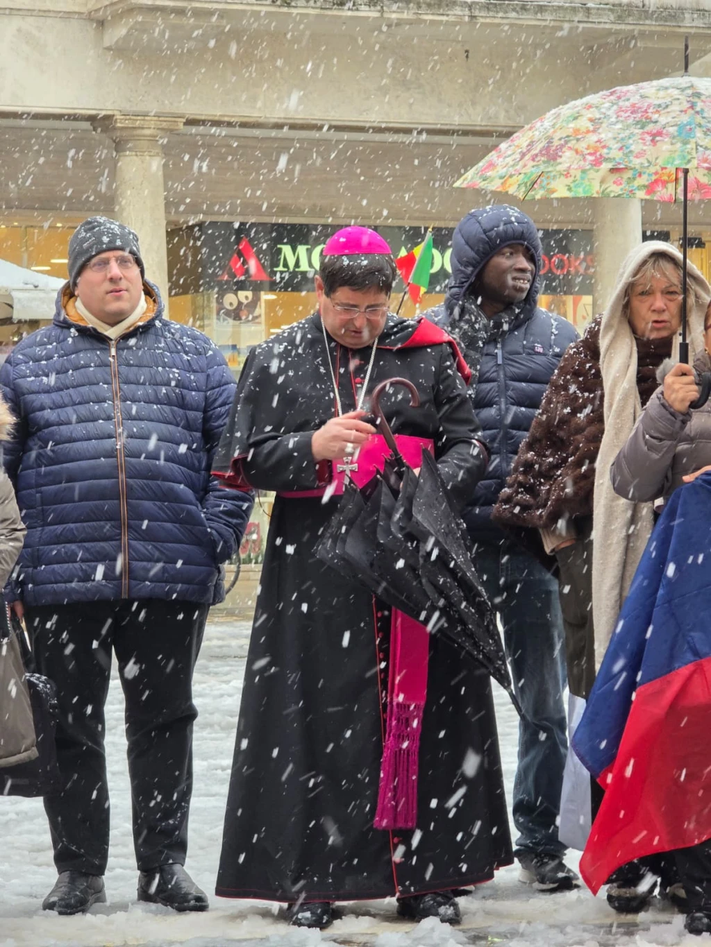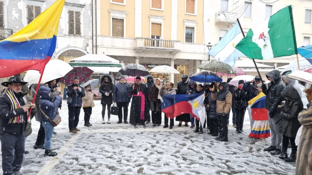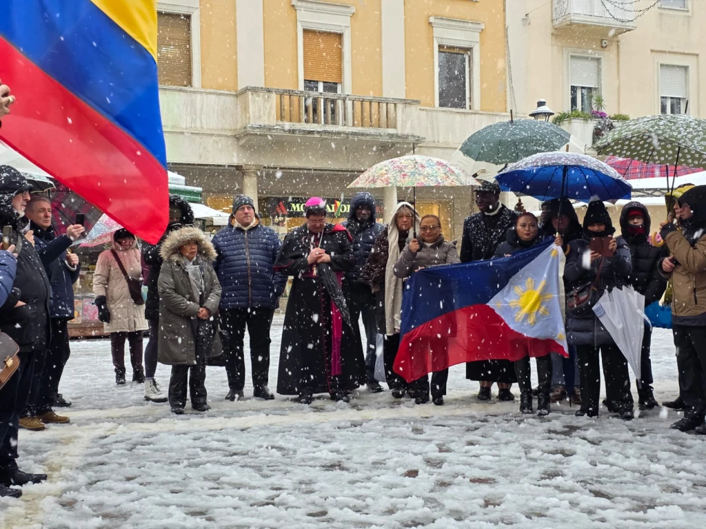 Messa dei Popoli con finale a sorpresa. Benedizione del Vescovo sotto la neve