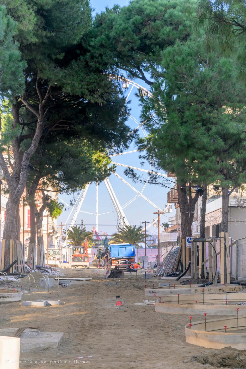 Nel cantiere di viale Ceccarini, tra bosco filare e tutela dei pini
