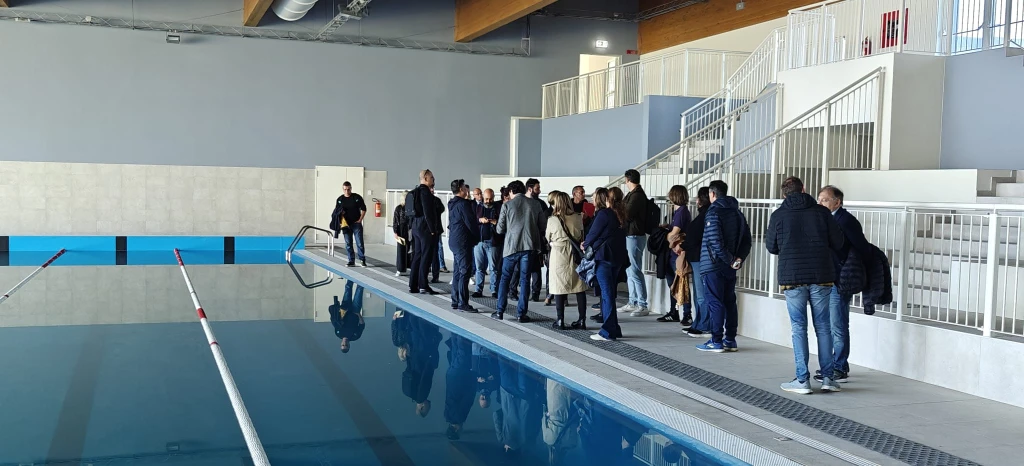 È in fase di collaudo la nuova piscina comunale di Rimini, che sorge al Parco don Tonino Bello nell’area compresa tra via Sacramora e via Baroni a Viserba. Oggi (24 ottobre) c'è stato un sopralluogo da parte dei consiglieri della II e VI Commissione accompagnati dagli assessori Mattia Morolli (lavori pubblici) e Michele Lari, dalla dirigente del Settore Edilizia Pubblica Chiara Fravisini. L’impianto comprende una vasca principale a 10 corsie, con dimensioni di 25x25 metri, con tribuna da 150 posti e due vasche per le attività di acqua fitness e avviamento al nuoto. Presenti poi spazi dedicati alla ristorazione e caffetteria, un'area fitness accessibile per le diverse capacità motorie, un'area giochi, un punto vendita di articoli sportivi. Due le aree parcheggio sui lati sud-est e sud-ovest del parco. Dal punto di vista ambientale, previsti impianti fotovoltaici integrati per la produzione autonoma di energia elettrica e sistemi di recupero termico ad alta efficienza applicati alle unità di trattamento aria capaci di soddisfare interamente il fabbisogno energetico dell’edificio.