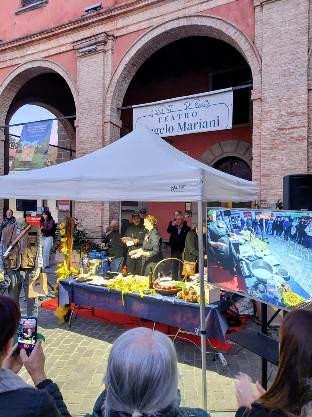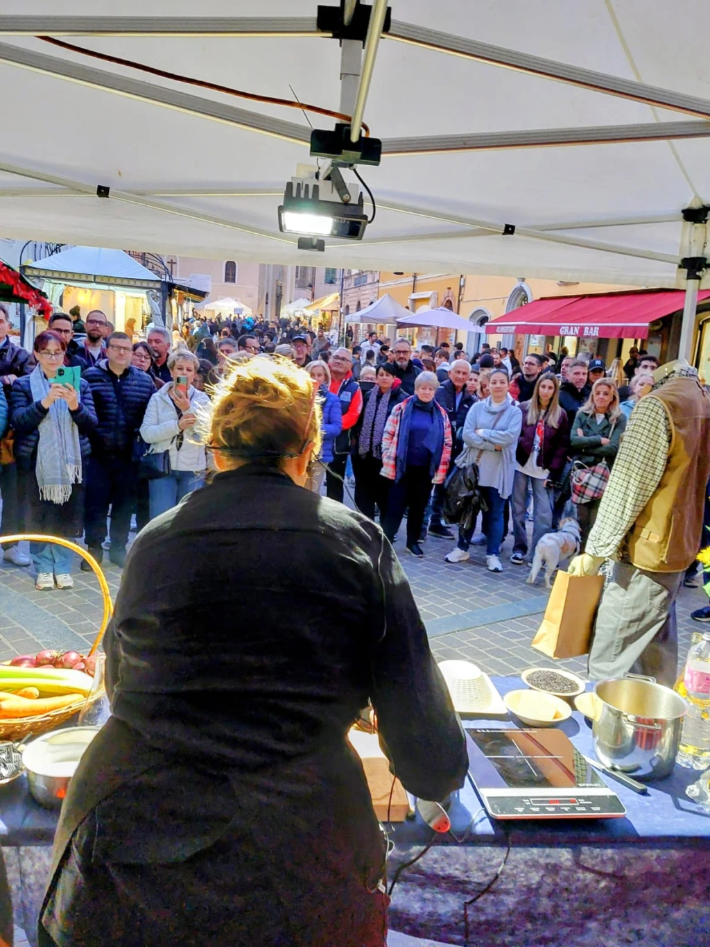 In piazza Garibaldi la chef ha conquistato il pubblico con un profumato riso nero al tartufo bianco: risotto con brodo, ricotta e latte sul quale ha grattato generose scaglie di tuber magnatum pico pregiato bianco, offerto dalle aziende Morelli Tartufi e Penna Tartufi. Preparato in diretta, è stato offerto in oltre cento assaggi gratuiti per la gioia del pubblico presente.