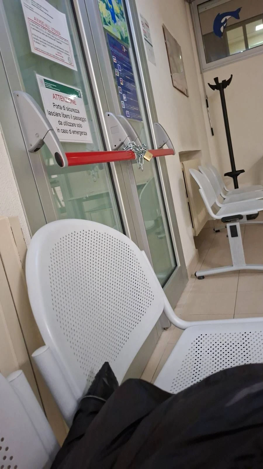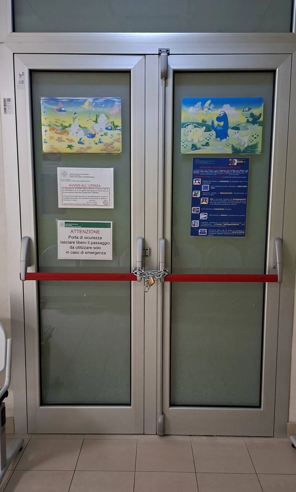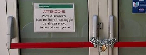 "Porta di sicurezza", ma il varco è sbarrato dal lucchetto. All'ospedale Infermi