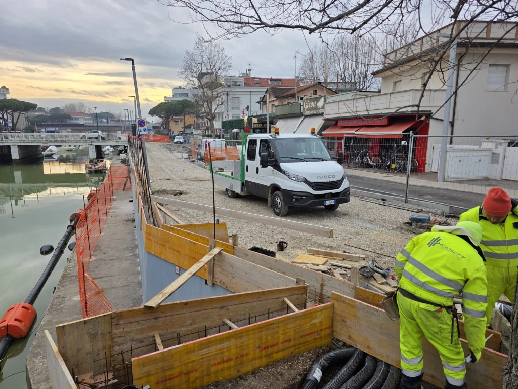Entrano nel vivo i lavori di riqualificazione del porto canale con la realizzazione della gradonata di viale Parini, elemento centrale del futuro anfiteatro urbano affacciato sull’acqua. L’intervento, interamente finanziato con risorse comunali per un importo complessivo di 500.000 euro si concluderà a primavera. Durante tutta la durata del cantiere, rimarrà fruibile e percorribile la pista ciclopedonale di viale Bellini, garantendo così il collegamento verso la zona mare. La gradonata sarà un nuovo spazio pubblico, concepito come area di sosta e incontro, e permetterà a cittadini e visitatori di vivere il rapporto con l’acqua in modo diretto e sicuro. I gradoni, realizzati con materiali naturali e durevoli, disegneranno una piazza lineare sull’acqua, in dialogo visivo e architettonico con la passeggiata di viale Bellini, già completata.