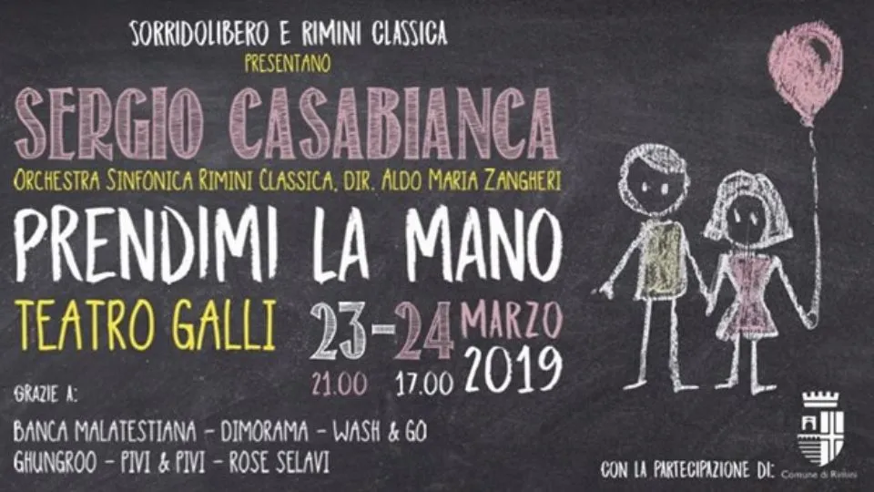 Sabato 23 marzo alle ore 21 e domenica 24 marzo alle ore 17 al Teatro Galli di Rimini lo spettacolo musicale “Prendimi la mano”.