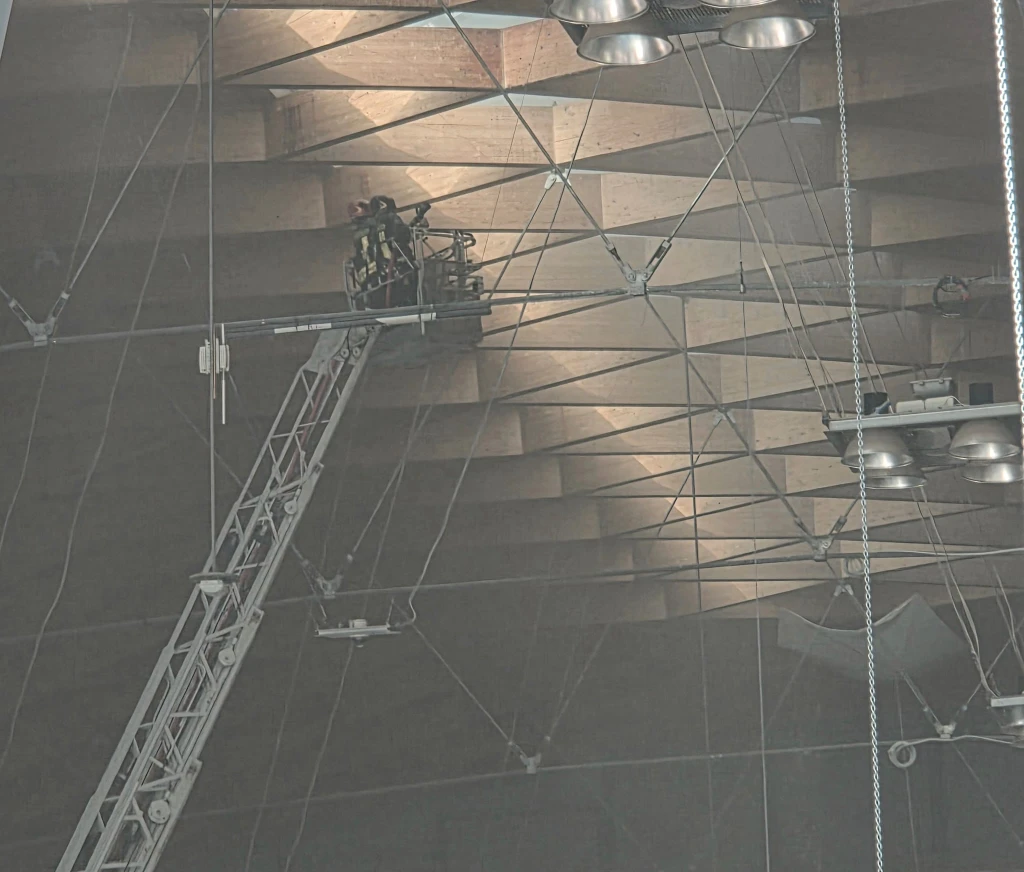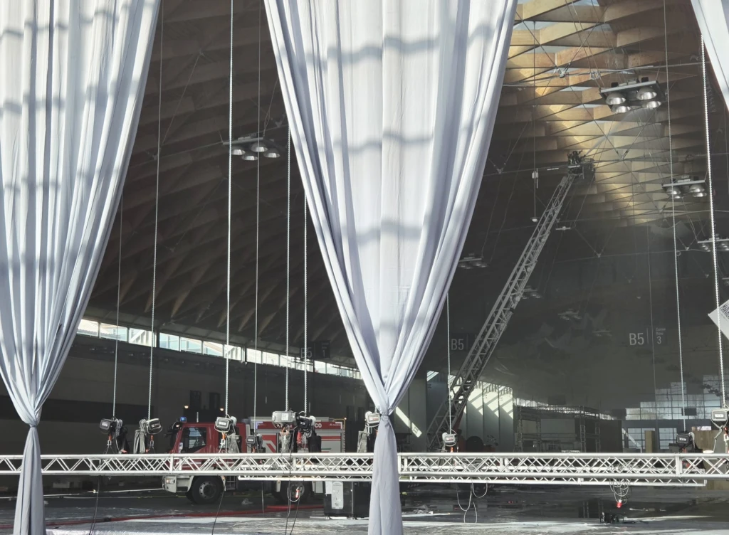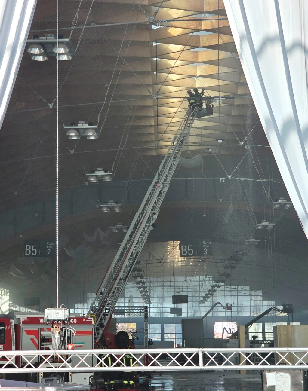 Principio d'incendio sul tetto della Fiera. Vigili del Fuoco al lavoro
