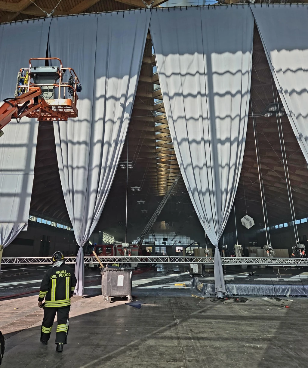 Erano in pausa pranzo gli operai che, attorno alle 13 di oggi (giovedì), hanno notato del fumo che proveniva dal tetto del padiglione B5. L'allarme è scattato subito e i vigili del fuoco sono immediatamente intervenuti con uomini e mezzi e, in poco tempo, sono riusciti a domare il principio d'incendio, sembra scaturito dall'impianto fotovoltaico. I pompieri sono ancora all'opera, per rimettere il tetto in sicurezza, ma è tutto sotto controllo.