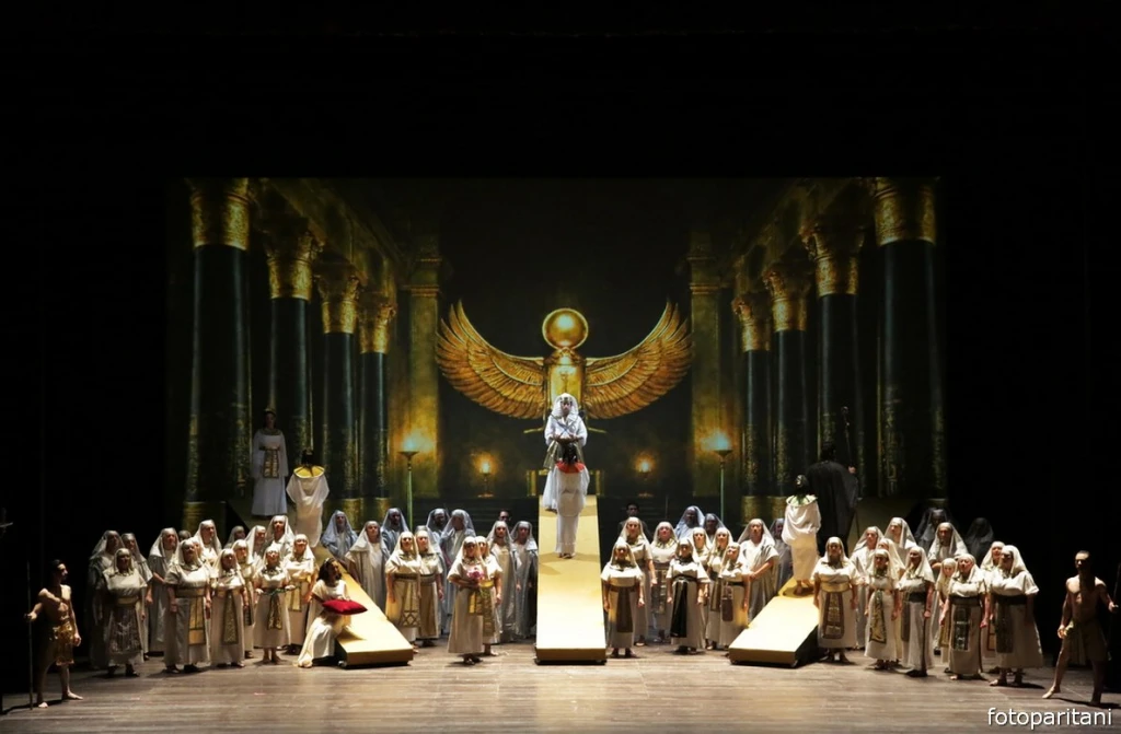 Prova generale al Galli per l'Aida. Il fascino dei cori e delle scenografie