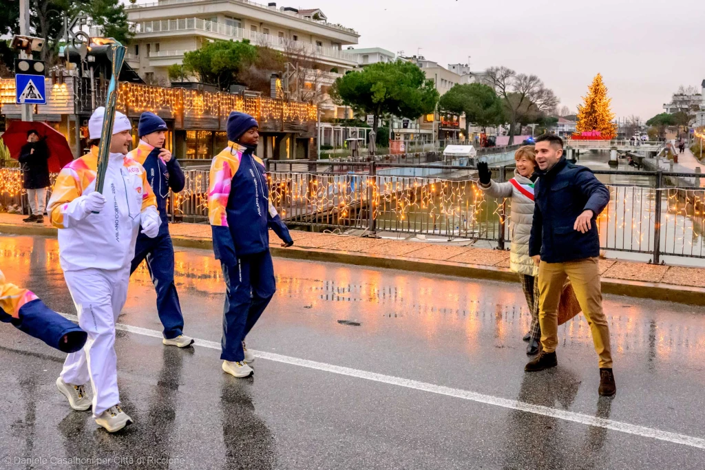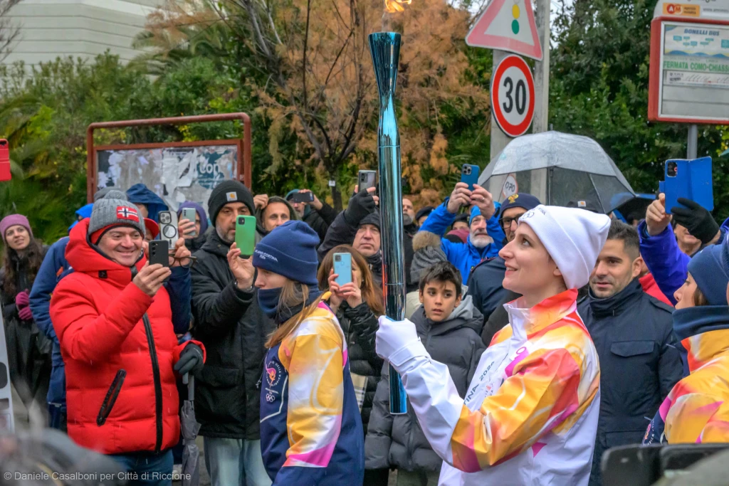 Il viaggio della Fiamma Olimpica è iniziato: in vista delle Olimpiadi invernali di Milano-Cortina che scatteranno il 6 febbraio, la fiaccola è arrivata anche in Romagna. Dopo l’accensione del tradizionale fuoco a Olimpia, in Grecia, lo scorso 26 novembre e l’arrivo a Roma, continua il viaggio di oltre 12.000 chilometri attraverso le regioni e i comuni italiani. A Riccione, che ha raccolto la fiamma proveniente da Gradara, il percorso è iniziato dopo le 16 da piazzale San Martino, snodandosi poi lungo i viali D’Annunzio, Verdi, Emilia, Portofino, Angeloni e nuovamente viale D’Annunzio, prima di proseguire in direzione di Rimini.