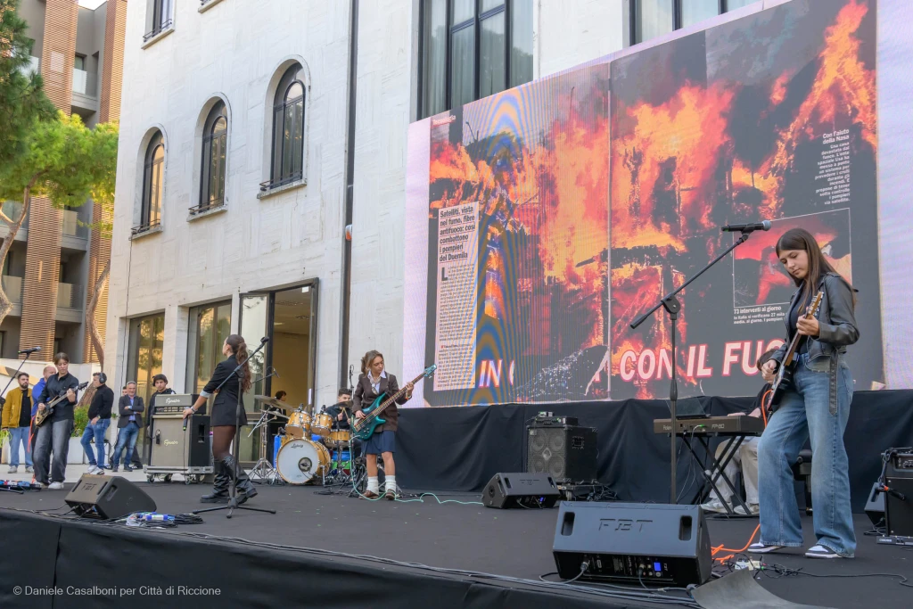 Domenica 19 ottobre il compleanno di Riccione è entrato nel vivo in piazzale Ceccarini, con una giornata interamente dedicata ai giovani e alla creatività. Dopo la presentazione dell’archivio digitale Icaroteche, accompagnata dalle melodie del pianista riccionese Massimiliano Rocchetta, le note musicali di giovani artisti si sono intrecciate a performance dal vivo, in un’atmosfera vibrante che ha celebrato la forza di una città giovane, dinamica, aperta al futuro e alle nuove generazioni. Protagonisti sono stati i ragazzi e le ragazze di Musicantiere, Giocamusica e dell’Istituto Musicale di Riccione, gli studenti e le studentesse del Liceo Volta–Fellini: tutti insieme, attraverso l’arte e la musica, hanno reso omaggio al compleanno della città.