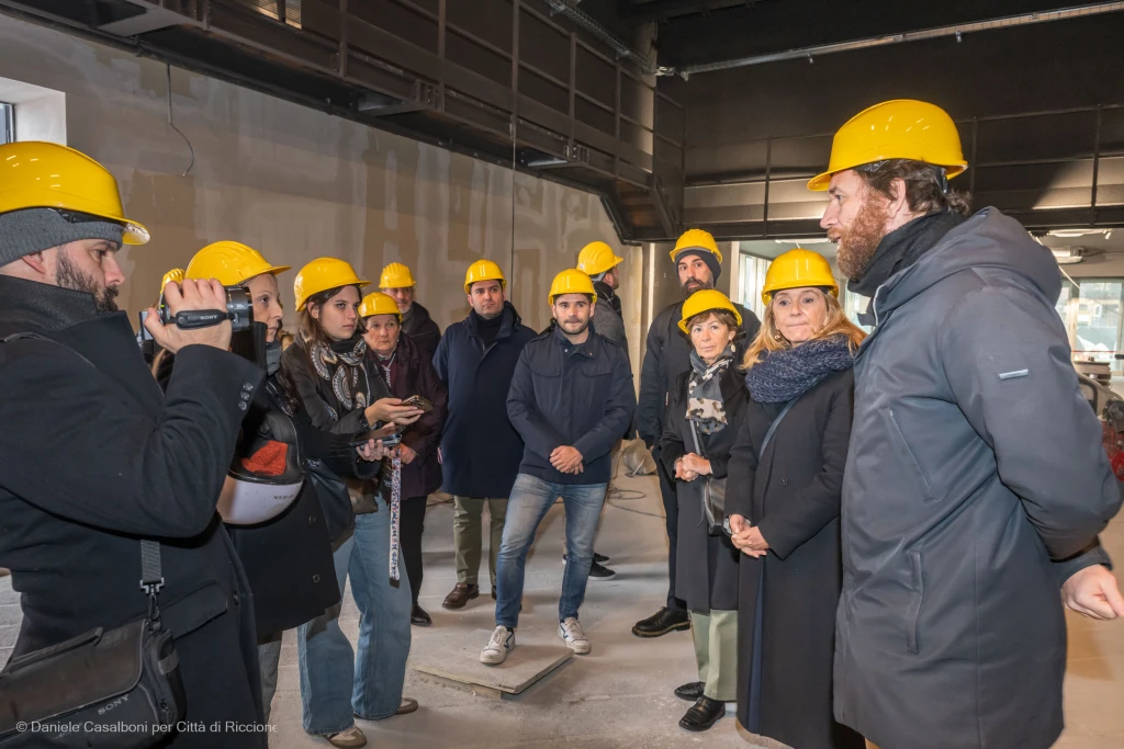 Lo Spazio Tondelli è il nuovo polo culturale e centro polifunzionale di Riccione, situato in posizione centrale tra viale Ceccarini e viale Don Minzoni. Riqualificato con un investimento complessivo di circa 2,5 milioni di euro, è stato ripensato per ospitare un’ampia gamma di eventi: prosa, danza, concerti, performance contemporanee ed eventi ibridi. La tredicesima tappa di “Riccione cambia: un viaggio nei cantieri per scoprire la città del futuro” ha portato questa mattina la sindaca Daniela Angelini, insieme alla giunta, ai progettisti, ai tecnici comunali e ai rappresentanti della stampa, all’interno del cantiere dello Spazio Tondelli: uno dei progetti più significativi del percorso di rigenerazione culturale e urbana della città.
