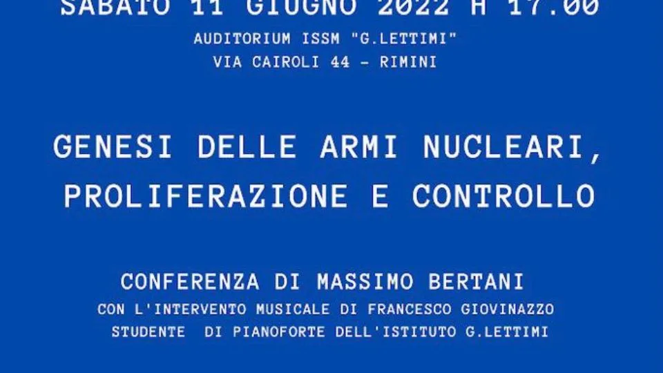Sabato la conferenza “Genesi delle armi nucleari, loro proliferazione e controllo”