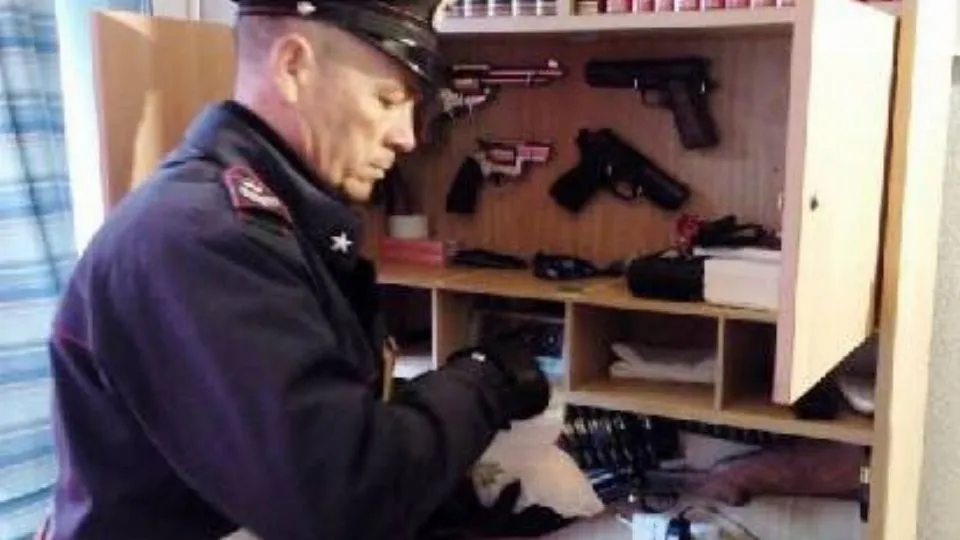 A casa sua hanno trovato: sei pistole, tre fucili giocattolo ad aria compressa e più di trecento cartucce di cui 50 pallettoni di vario calibro.