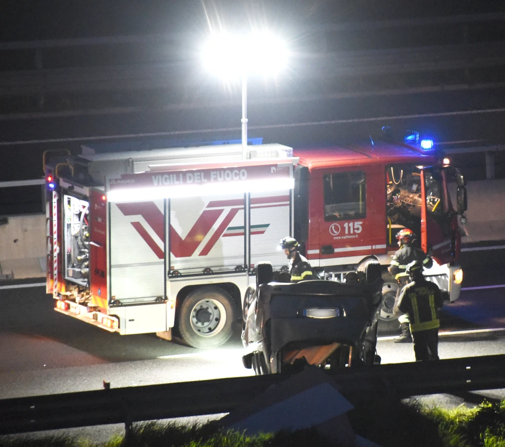 In foto: La vettura ribaltata in A14 (foto Migliorini)