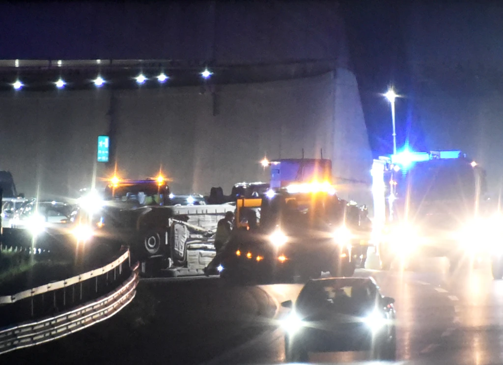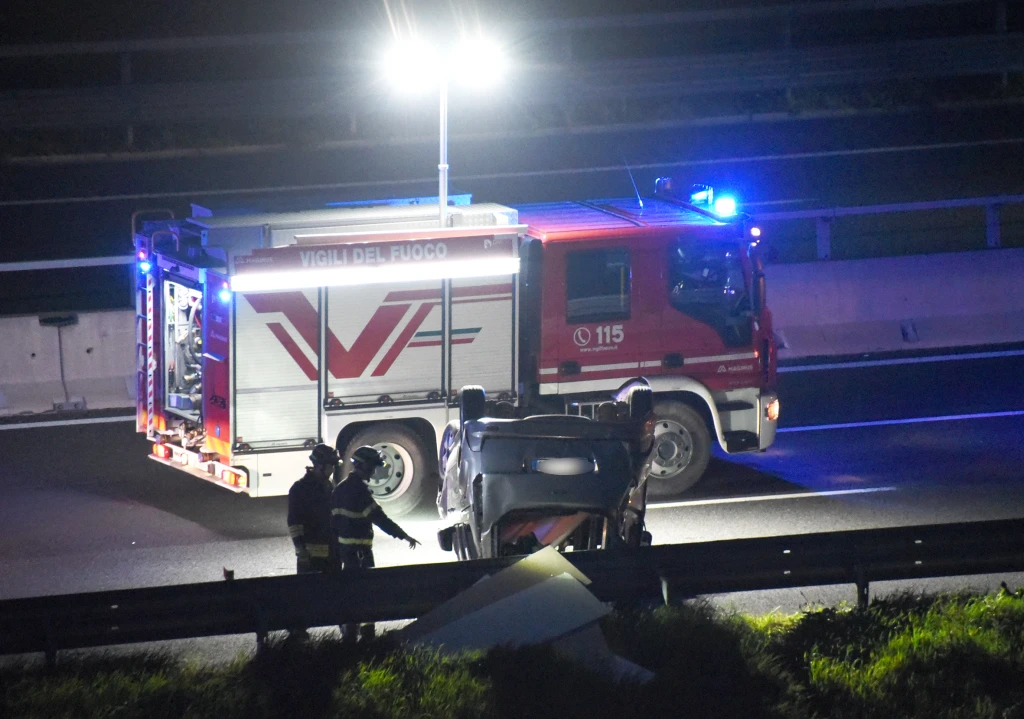 Tamponamento in A14 all'uscita dalla galleria, auto ribaltata
