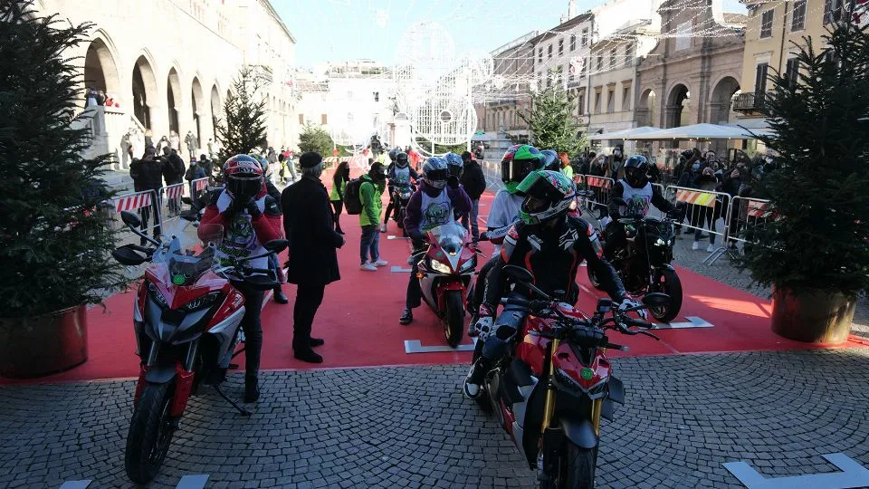 In testa, il fresco campione in sella ad una Ducati Streetfighter, la Casa motociclistica che lo vedrà tra i protagonisti della prossima stagione in MotoGp dove Enea debutterà nel team Epsonrama Racing. Sempre in moto, con la stessa Ducati Multistrada V4 da 170 cv e una Diavel, il Sindaco di Rimini Andrea Gnassi e il pilota Ducati sia in MotoGp che in SuperBike Michele Pirro.