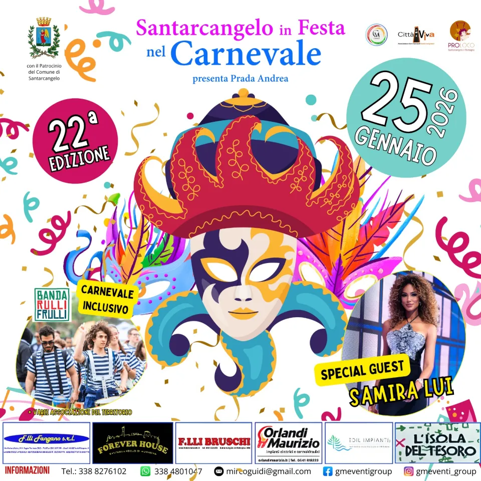 Domenica 25 gennaio è in programma la tradizionale sfilata di Carnevale: con la direzione artistica di GM Group di Mirco Guidi in collaborazione con Pro Loco Santarcangelo e Città Viva, un pomeriggio di divertimento e inclusione grazie alla banda musicale Rulli Frulli e alla cooperativa sociale Akkanto.