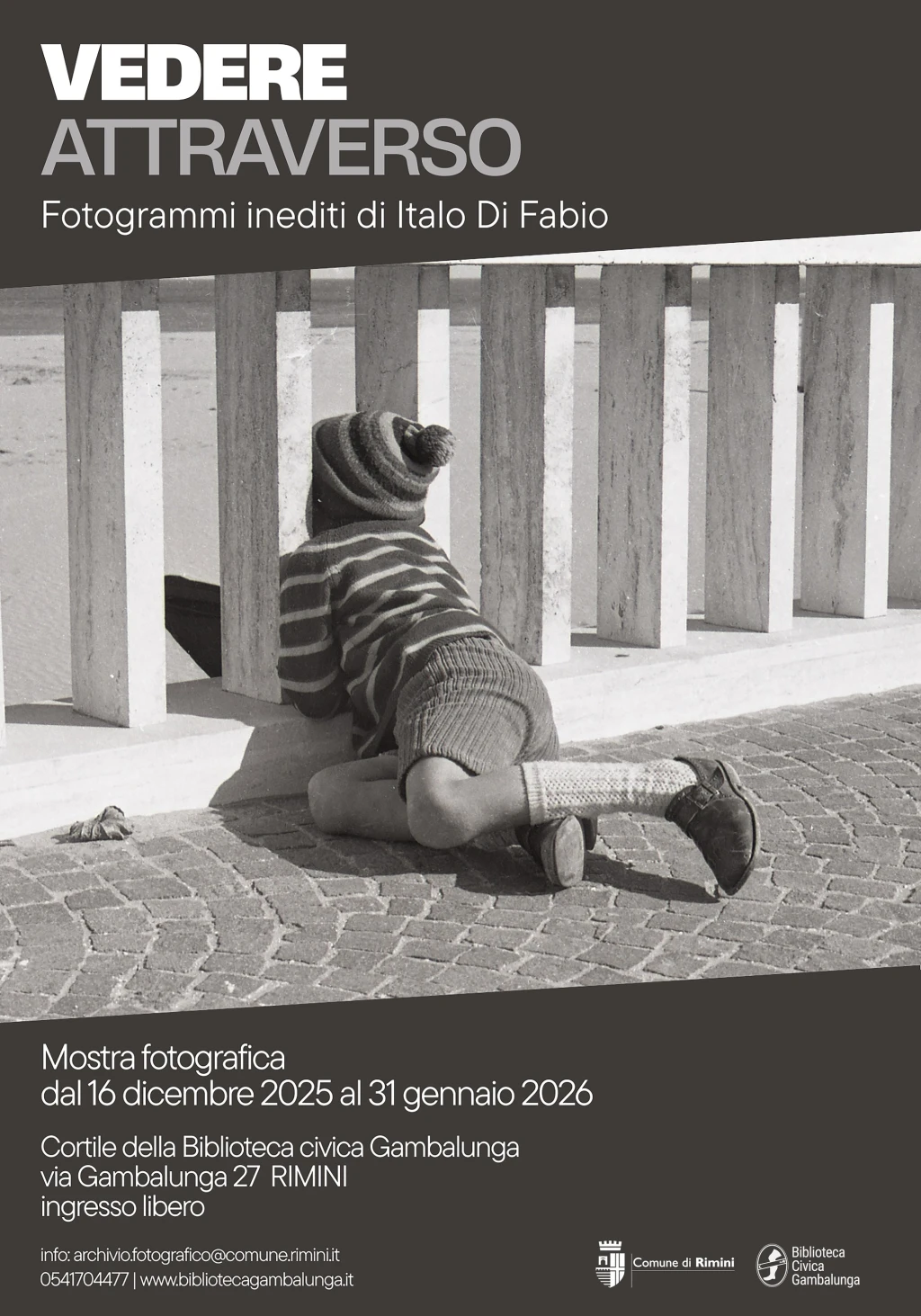 Cronache visive, sperimentazioni e l'anima della Riviera nella nuova mostra che dal 16 dicembre la Biblioteca Gambalunga dedica a uno dei suoi autori più significativi: Italo Di Fabio (Pescara, 1931), riminese d'adozione, cofondatore del Foto Cine Club di Rimini e maestro riconosciuto a livello internazionale (onorificenze FIAP e PSA). L’esposizione offre una prospettiva inedita sui decenni 1960-1980, attingendo all’imponente Archivio Italo Di Fabio (oltre 275.000 immagini), donato dall'autore alla Gambalunga nel 2022. La mostra, a ingresso libero, resterà allestita nel cortile della Biblioteca Gambalunga fino al 31 gennaio.